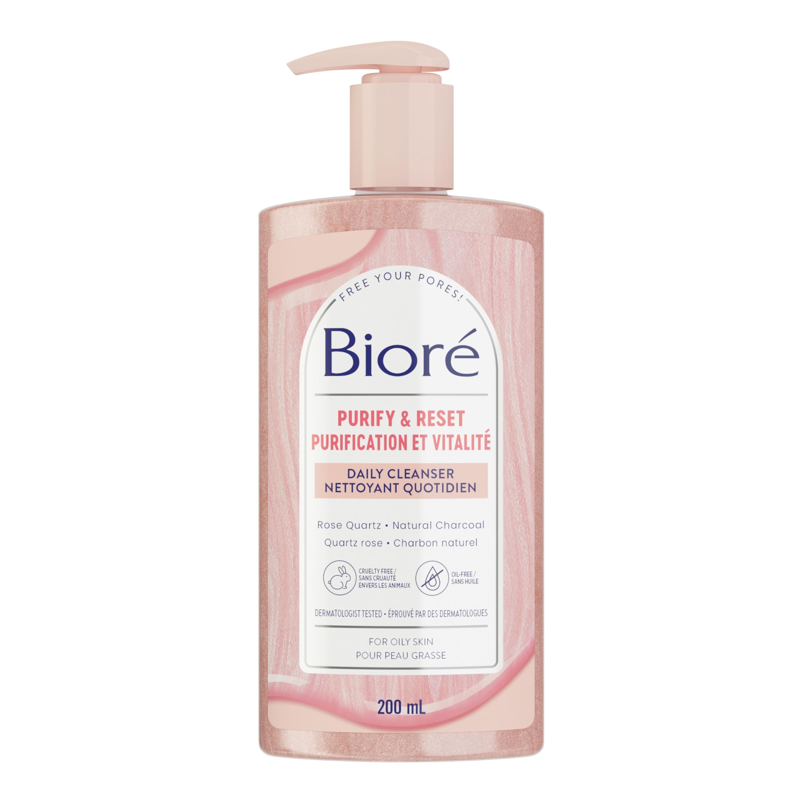 Show your pores some love with Bioré Rose Quartz Charcoal Daily Purifying Cleanser. It works to deep clean and purify pores, drawing out 2x more dirt, oil, and impurities than a basic cleanser. Made with natural charcoal, known for its ability to draw out and trap impurities. It's infused with Rose Quartz, a natural crystal known as the stone that radiates self love and care. A subtle rose fragrance adds a soothing experience to your skincare routine. Dermatologist tested, oil-free, non-comedogenic (won't clog pores), hypoallergenic, cruelty-free, and vegan friendly, it's gentle enough for daily use. Wet face. Pump cleanser into hands and work into a lather. Massage over entire face, then rinse thoroughly with water.Dermatologist Tested. Scented. Not Tested On Animals. Hypoallergenic.
