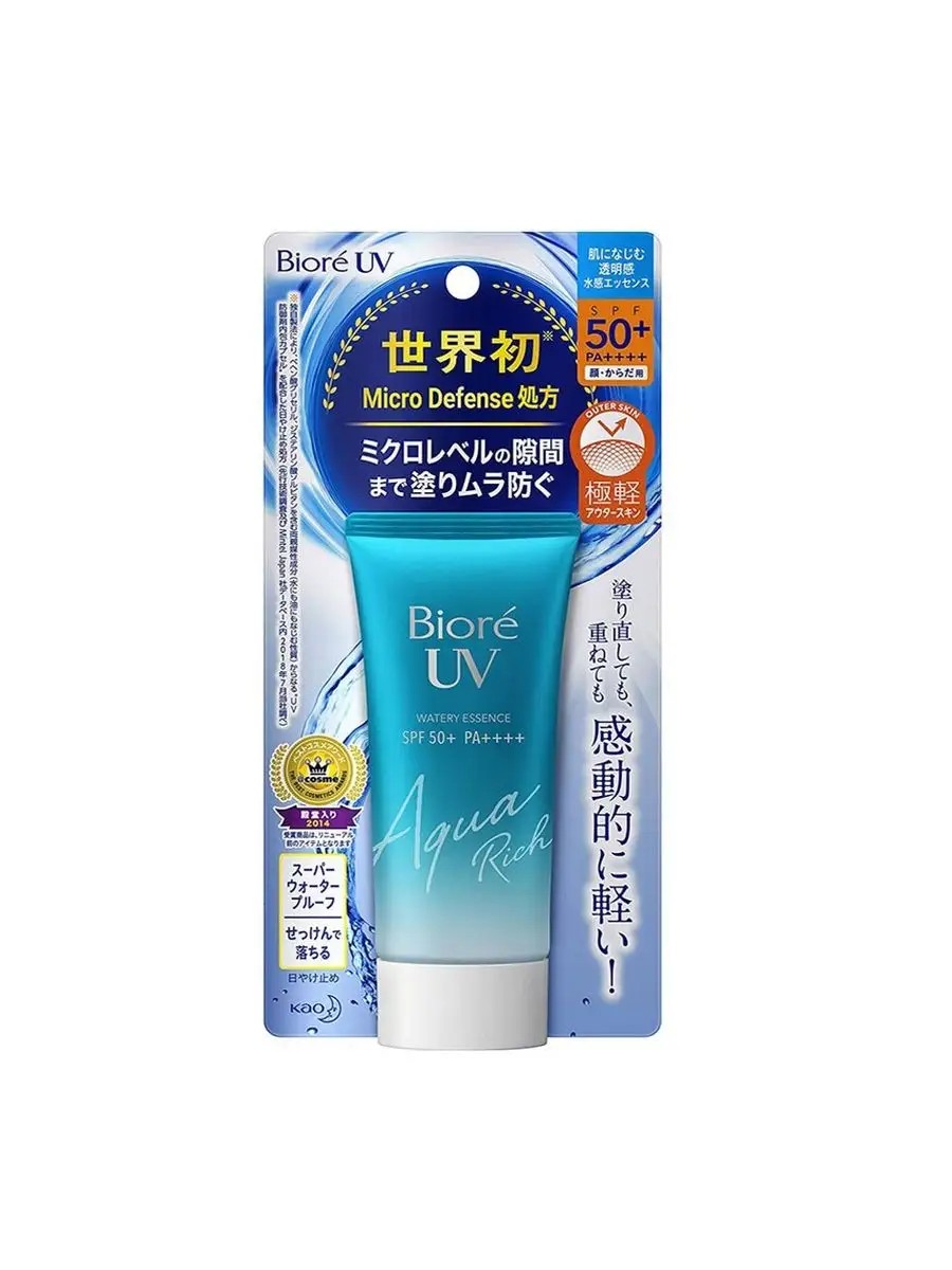 Biore SPF50+ The world's first formula for protection and uniform coverage at the micro-level.