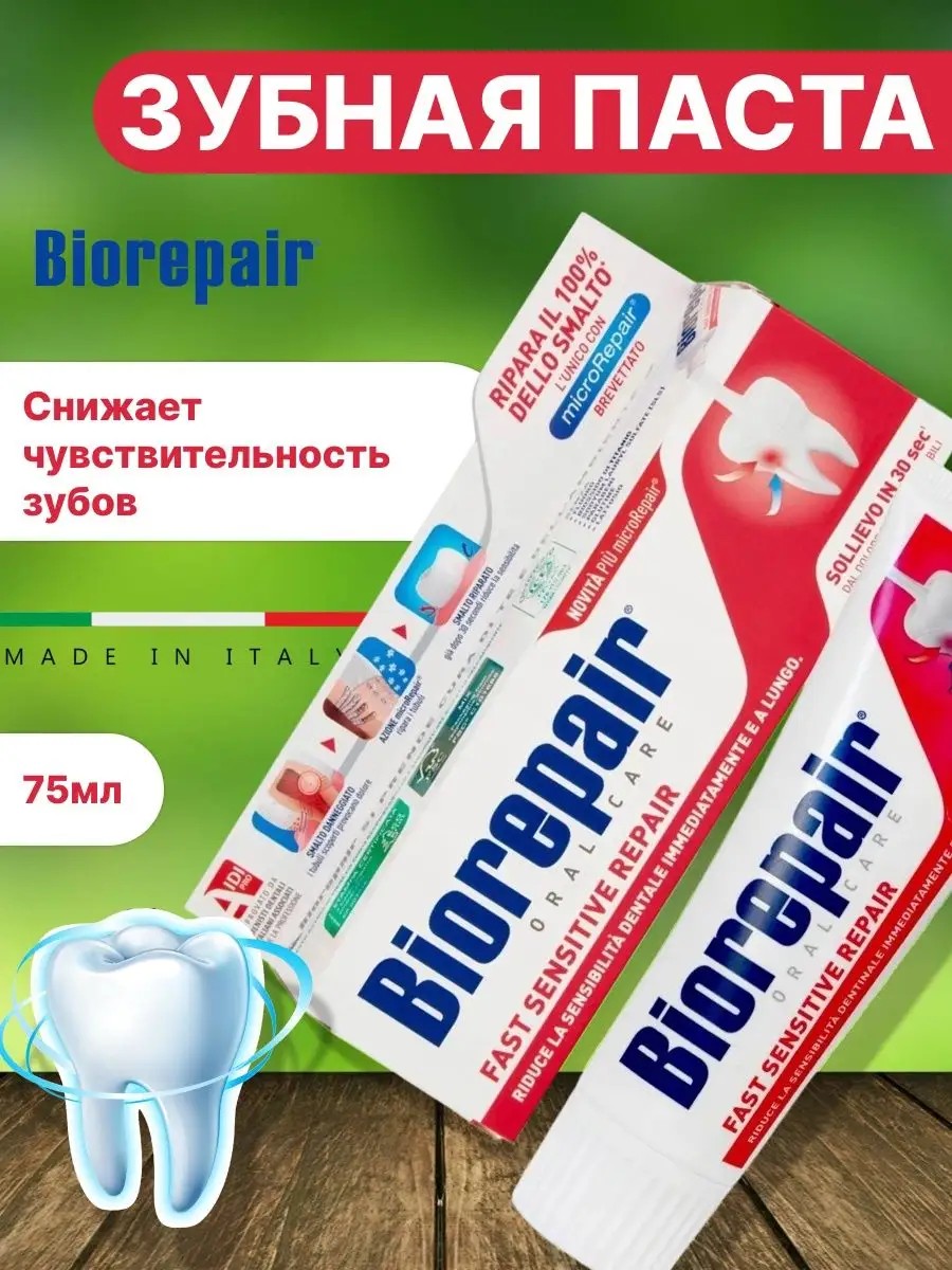 Зубная паста биорепаир Fast Sensitive Repair для чувствительных зубов 75мл. Производство ИТАЛИЯ. ОРИГИНАЛ. Зубная паста при гиперчувствительности зубов, вызванной поражением десен: