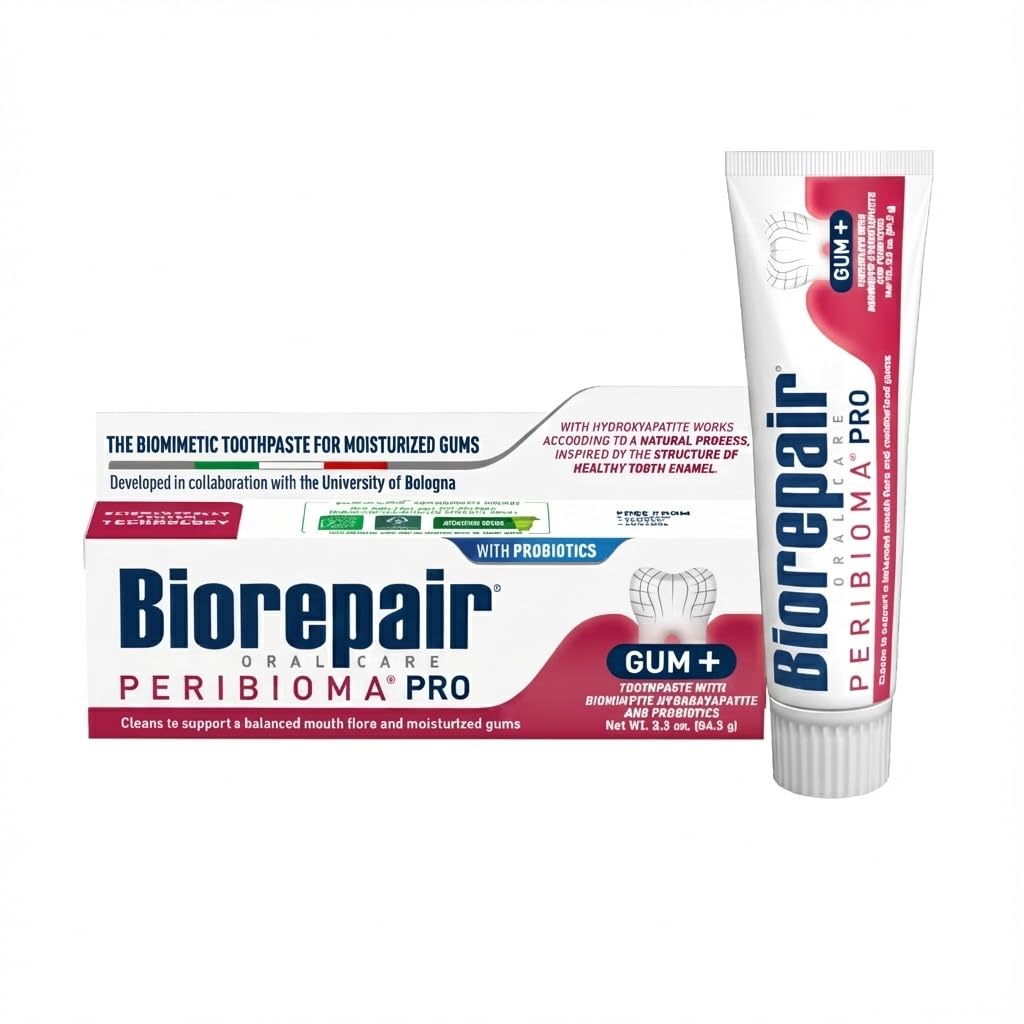 BIOREPAIR, ADVANCED PROTECTION FOR ORAL HEALTH: Biorepair was created through a partnership between Coswell and the LEBSC at the University of Bologna to revolutionize oral care. Thanks to biomimetic hydroxiapoatite technology, it mimics tooth enamel to offer unique protection against cavities and plaque—ensuring strong, healthy teeth every day. FLUORIDE, GLUTEN, AND LACTOSE FREE: Biorepair is free from fluoride, gluten, and lactose, making it a suitable option for everyone's daily oral care. It is also appropriate for children under 6 years old (under adult supervision), offering a gentle, fluoride-free solution for maintaining healthy teeth and gums. INNOVATIVE FORMULA ENRICHED WITH PROBIOTICS: Biorepair Periobioma Pro supports the natural balance of the oral microbiota. The formula also includes Chios Mastiha, Vitamins A.C.E and Hyaluronic acid. SUPPORTS A BALANCED MOUTH FLORA AND MOISTURIZED GUMS: The oral microbiota is the set of micro-organisms that live in symbiosis in our mouth. In this ecosystem it's important to keep a balance between the different bacterial species, in order to promote healthy mouth and gums. BIOREPAIR PERIBIOMA PRO, ADVANCED FORMULA FOR ORAL HEALTH MAINTENANCE: Biorepair Periobioma Pro is a scientifically formulated toothpaste designed to promote optimal oral health. With its innovative blend of probiotics and biomimetic hydroxyapatite, it supports the balance of the oral microbiota, contributing to the overall health of both teeth and gums.