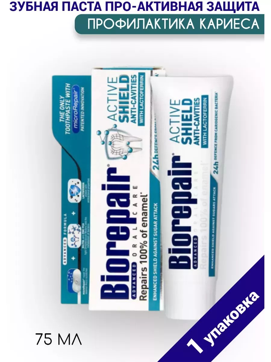 Зубная паста Biorepair Pro-Active предназначена для комплексного ухода за полостью рта. Благодаря своей игольчатой структуре microRepair встраиваются в зубную эмаль, заполняя микротрещины, восстанавливают ее и делают гладкой; снижает гиперчувствительность зубов.Зубная паста рекомендована: при избыточном образовании зубного налета; для профилактики кариеса и при образовании налета; для снижения гиперчувствительности эмали; при галитозе. Biorepair Pro-Active – это идеальный выбор для тех, кто хочет сохранить здоровье своих зубов и полости рта.Зубная паста для проактивной защиты:- восстанавливает эмаль при помощи уникальных частиц microRepair. Их состав идентичен природному гидроксиапатиту, из которого состоят эмаль и дентин. Благодаря своей игольчатой структуре microRepair встраиваются в зубную эмаль, заполняя микротрещины, восстанавливают ее и делают гладкой;- снижает гиперчувствительность зубов: вы можете употреблять сладкую, горячую или холодную пищу без неприятных ощущений;- оказывает мощное антибактериальное воздействие благодаря ионам цинка: препятствует появлению бактерий и неприятного запаха в полости рта;- обладает двойным антибактериальным эффектом: действие ионов цинка дополняет ксилитол, который восстанавливает кислотно- щелочной баланс полости рта и препятствует росту патогенной микрофлоры полости рта;- препятствует образованию налёта и зубного камня, эффективна при обильном образовании налета (в том числе у курящих) благодаря более высокому индексу RDA;Результат:• Восстанавливает и защищает зубную эмаль с помощью частиц MICROREPAIR, которые схожи по составу с зубной эмалью.