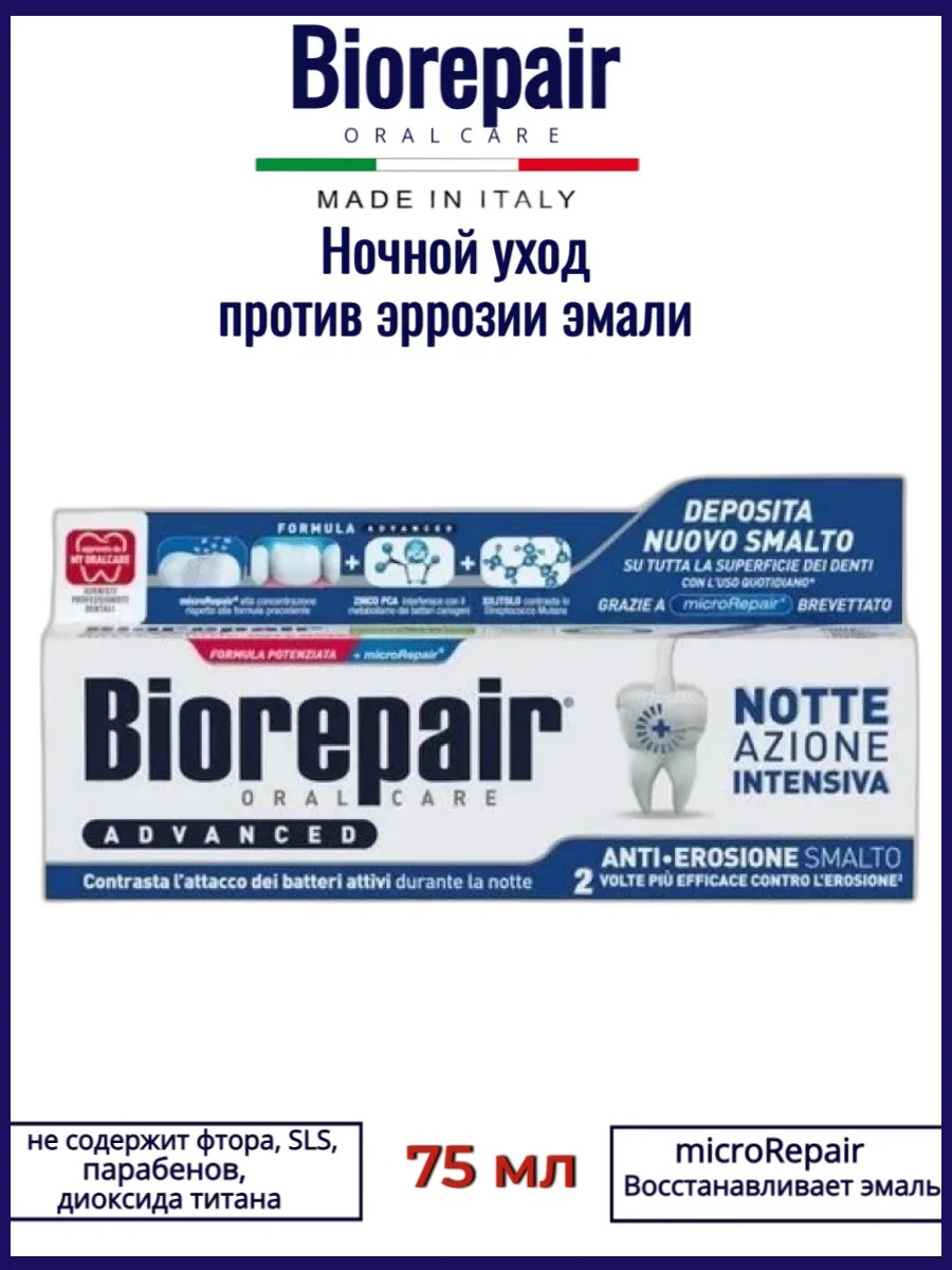 Biorepair Зубная паста ночное восстановление зубов, 75 мл