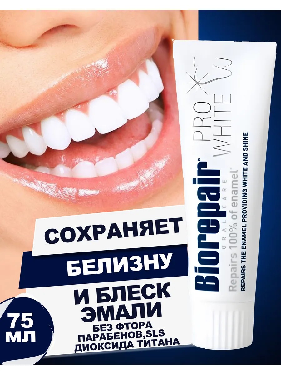 Зубная паста biorepair Pro White, не только отбеливает, но и одновременно укрепляет зубную эмаль!