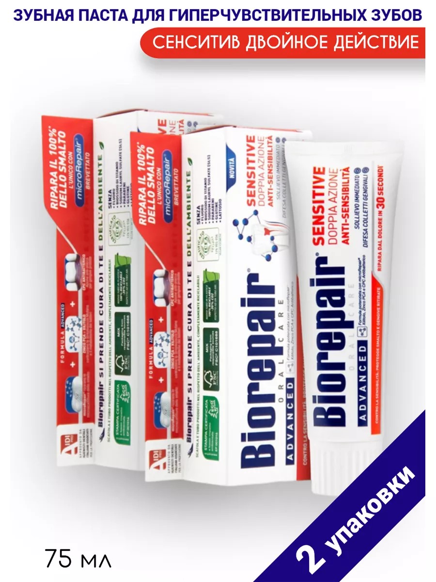Biorepair Зубная паста сенситив двойное действие 75мл - 2шт