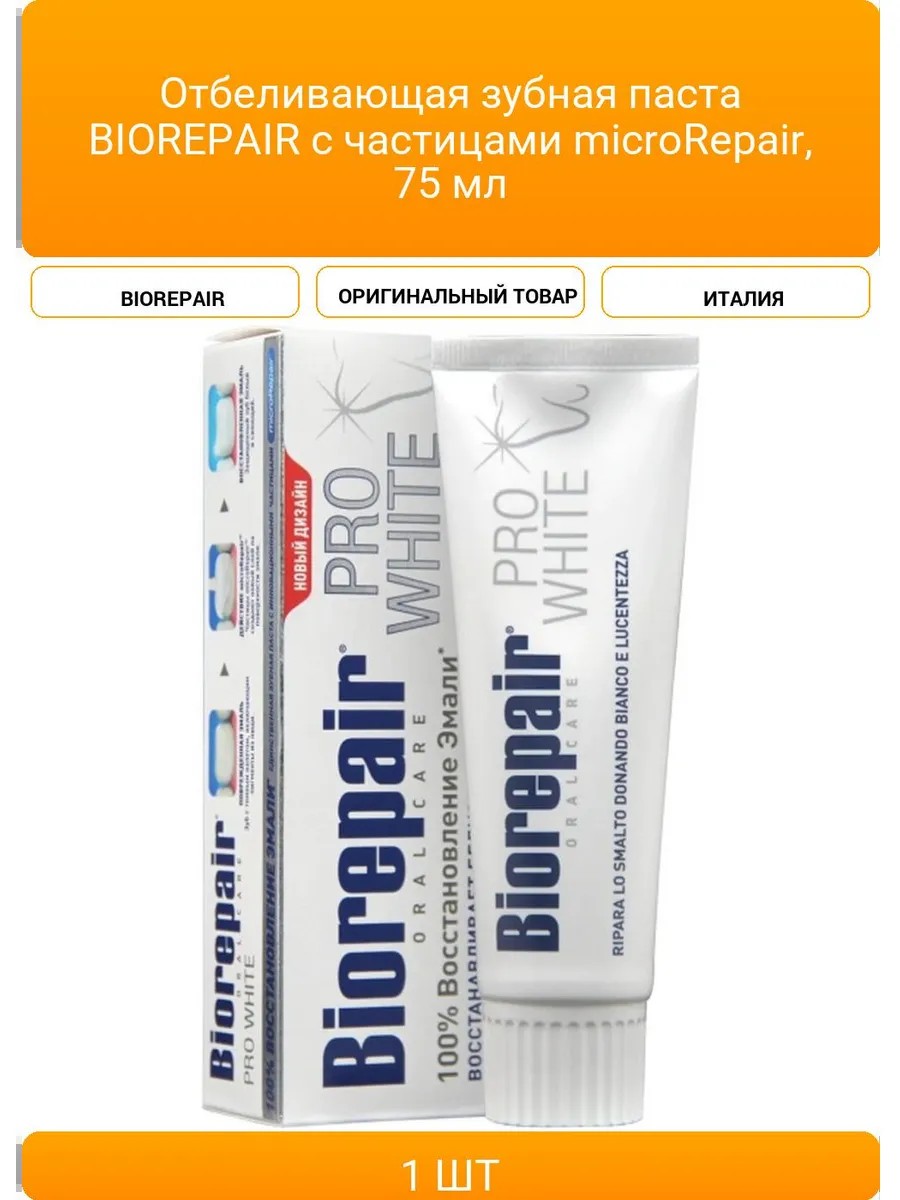 | Комплектация | Отбеливающая зубная паста BIOREPAIR с частицами microRepair, 75 мл |