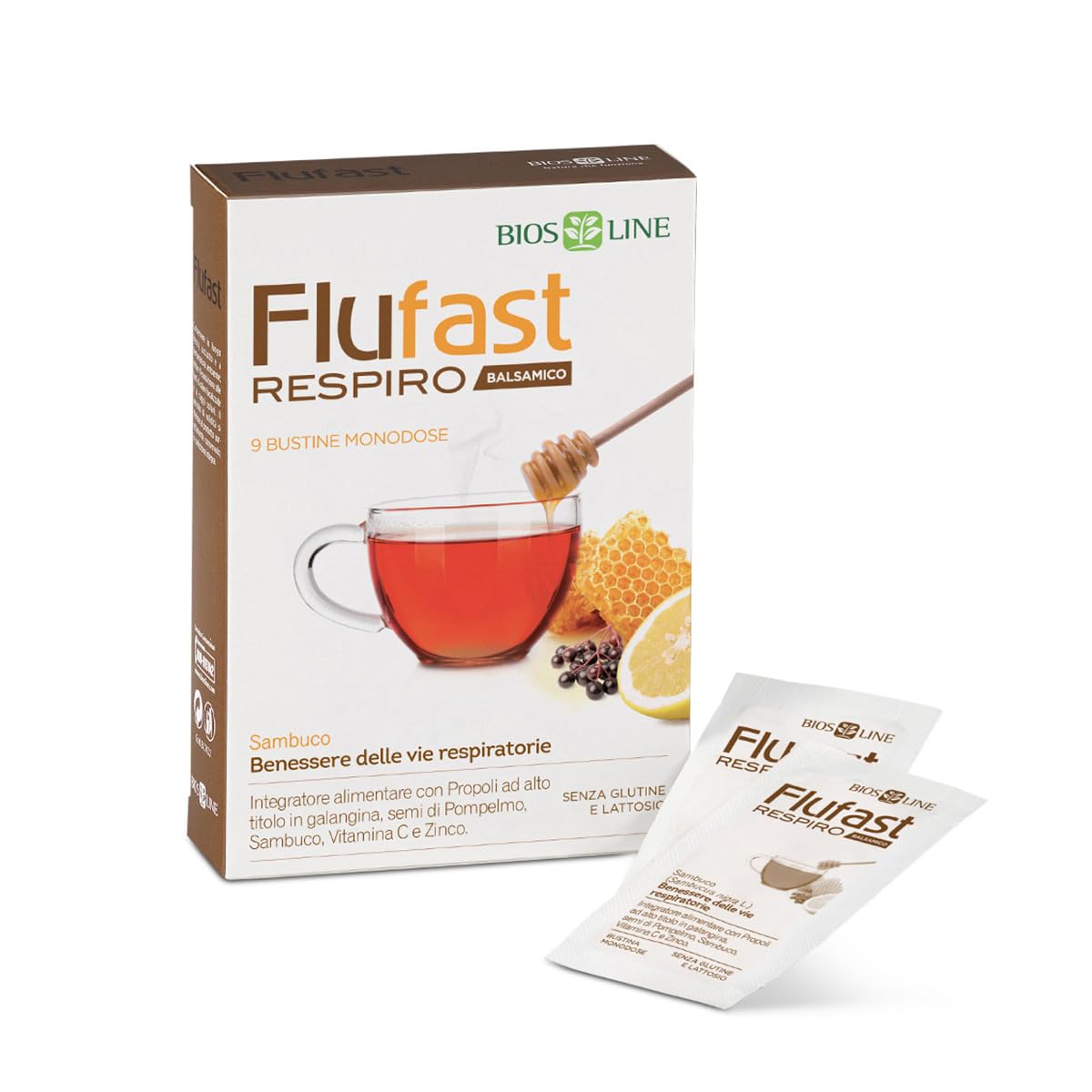 BioSLINE Flufast Respiro Balsamic, 9 single-dose sachets of food supplement, ideal for respiratory well-being. Flufast Respiro combines the well-known properties of propolis with the antioxidant properties of grapefruit seeds, rich in bioflavonoids. INGREDIENTS Ingredients: cane sugar, millefiori honey, elderberry (Sambucus nigra L.) fruit extract (15 anthocyanins), vitamin C (L-ascorbic acid), propolis (propolis, sucrose) resin (12 total polyphenols expressed as galangin), maltodextrin, microencapsulated essential oils (Eucalyptus globulus Labill., Mentha x piperita L., Thymus vulgaris L., gelatin), flavorings, grapefruit (Citrus paradisi Macfad) seeds. Contains 45 bioflavonoids, sweetener: steviol glycosides of stevia zinc gluconate, anti-caking agent: silicon dioxide. SAFETY WARNING Do not exceed the recommended daily dose. Keep out of reach of children. Supplements should not be used as a substitute for a varied and balanced diet and a healthy lifestyle. See moreDetails: This supplement is gluten-free, lactose-free, and suitable for vegetarians. Please read the warnings on the packaging. Package contents: Flufast Respiro combines the well-known properties of propolis with the antioxidant properties of grapefruit seeds, which are rich in bioflavonoids. Elderberry extract is beneficial for respiratory health and helps loosen bronchial secretions. Eucalyptus, mint, and thyme essential oils have a balsamic, soothing, and calming effect, contributing to the well-being of the nose and throat. Vitamin C and zinc support normal immune system function. How to use: It is recommended to use 1 to 3 sachets of Flufast Respiro Balsamic daily, dissolved in water, preferably warm. For children aged 3 to 12, we recommend using only 1 to 2 sachets of Flufast Respiro Orange per day. Convenient sachets: Flufast Respiro comes in convenient sachets that dissolve in hot water and should be drunk immediately to best utilize the properties of the essential oils. Dietary supplement: This supplement is a valuable aid to take at the first signs of the cold season, especially in cases of blocked nose and congested airways: it combines the effectiveness of its ingredients with the benefits of a hot drink.BIOS LINE Flufast souffle balsamique, 9 sachets unidoses de complément alimentaire idéal pour le bien-être des voies respiratoiresDESCRIPTION DU PRODUIT DESCRIPTION DU PRODUIT BioSLINE Flufast Respiro Balsamique, 9 sachets unidoses de complément alimentaire, idéal pour le bien-être des voies respiratoires. Flufast Respiro, associe les propriétés bien connues de la propolis à celles antioxydantes des graines de pamplemousse, riches en bioflavonoïdes INGRÉDIENTS Ingrédients : sucre de canne, miel millefiori, sureau (Sambucus nigra L.) Fruits e.s. Tit. 15 en anthocyanes, vitamine C (acide L-ascorbique), propolis (propolis, saccharose) résine. Tit. 12 de polyphénols totaux exprimés comme galangine, maltodextrine, huiles essentielles microencapsulées (Eucalyptus globulus Labill., mentha x piperita L, thymus vulgaris L, gélatine), arômes, pamplemousse (Citrus paradisi Macfad) graines e.s. Tit. 45 en bioflavonoïdes, édulcorant : glycosides stévioliques de stévie gluconate de zinc, agent anti-agglomérant: dioxyde de silicium. AVERTISSEMENT DE SÉCURITÉ Ne pas dépasser la dose quotidienne recommandée. Tenir hors de portée des enfants Les compléments ne doivent pas être utilisés comme remplacement à une alimentation variée et équilibrée et d'un mode de vie sain. Voir plusDétails : le complément est sans gluten, sans lactose et convient aux végétariens. Veuillez lire les avertissements figurant sur l'emballage. Contenu du colis : Flufast Respiro, associe les propriétés connues de la propolis à celles antioxydantes des graines de pamplemousse, riches en bioflavonoïdes. L'extrait de sureau est utile pour le bien-être des voies respiratoires et pour favoriser la fluidification des sécrétions bronchiques. Les huiles essentielles d'eucalyptus, de menthe et de thym jouent une action balsamique, apaisante et apaisante en contribuant au bien-être du nez et de la gorge. La vitamine C et le zinc sont utiles aux fonctions normales du système immunitaire. Comment l'utiliser : il est recommandé d'utiliser 1 à 3 sachets par jour de Flufast respiration balsamique, à dissoudre dans l'eau, de préférence chaude. Pour les enfants de 3 à 12 ans, nous vous recommandons uniquement d'utiliser Flufast Respiro Orange de 1 à 2 sachets par jour. Sachets pratiques : Flufast Respiro est inséré dans des sachets pratiques à dissoudre dans de l'eau chaude et boire immédiatement pour exploiter au mieux les propriétés des huiles essentielles. Complément alimentaire : le complément est une aide précieuse à prendre aux premiers troubles de la saison froide, surtout en cas de nez bouché et de voies aériennes congestionnées : il combine à l'efficacité de ses ingrédients les bienfaits d'une boisson chaude.