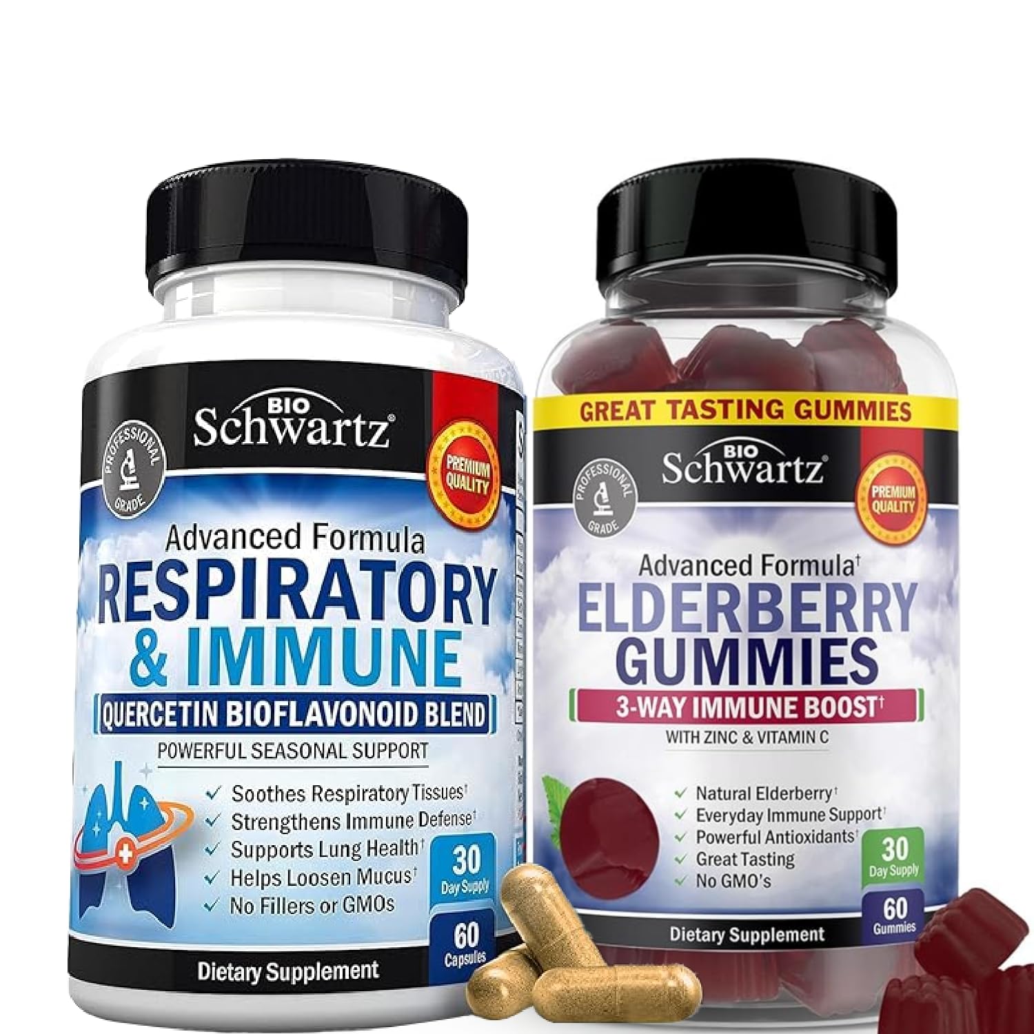 BioSchwartz Respiratory & Immune Lung Support Supplement with Quercetin (1 Month Supply) Plus Elderberry Gummies with Zinc and Vitamin C for Adults Immune Support (1 Month Supply)