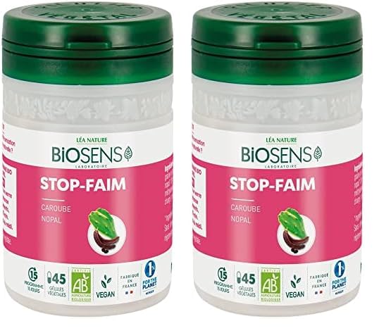 Biosens - Gélule végétale Stop faim - Caroube et Nopal - Certifié Bio AB Vegan - Fabriqué en France - Actifs 100 Végétaux - Programme de 15 jours - 45 gélules (Lot de 2)