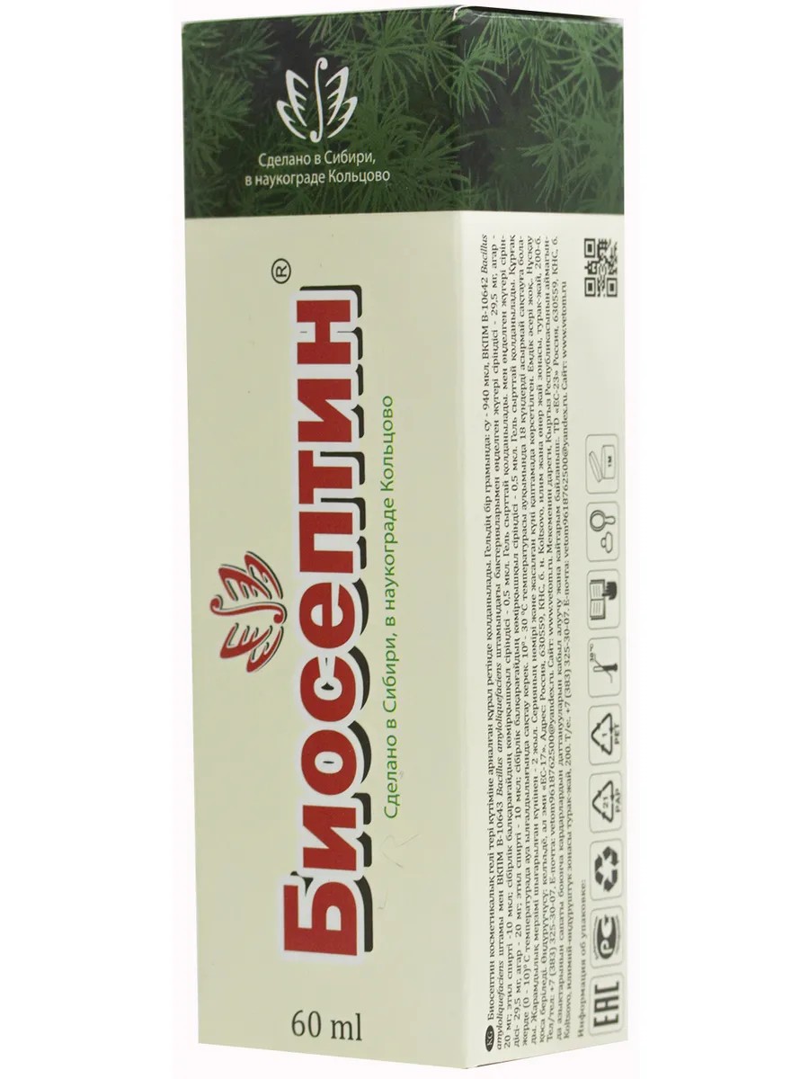 Биосептин 4 (НПФ Исследовательский центр) мазь, 60 мл. Состав В одном грамме геля содержится: вода 940 мкл; кукурузный экстракт, переработанный бактериями Bacillus amyloliquefaciens штамм ВКПМ В-10642 и Bacillus amyloliquefaciens штамм ВКПМ В-10643 38, 5 мг; агар 20 мг; спирт этиловый 1 мкл; экстракт пихты сибирской 0, 5 мг. Полупрозрачный гель светло-коричневого цвета. Область применения Гель Биосептин наружное средство для ухода за кожей. Переработанный бактериями и насыщенный продуктами их жизнедеятельности, биологически активный кукурузный экстракт придает коже ухоженный вид. Гель увеличивает природную сопротивляемость организма к возникновению кожных угрей различного типа (в том числе сальных пробок, угрей пузырных, вульгарных и др). Не обладает лечебным эффектом. Противопоказания Повышенная чувствительность к компонентам геля. Рекомендации по применению Гель Биосептин нанести тонким слоем на чистую сухую кожу с кратностью не менее (1 2) раз в сутки. Гель применяется без возрастных ограничений. Форма выпуска Гель Биосептин расфасован в тубу из полимерных материалов, которая с аннотацией упакована в коробку из картона. Срок годности 2 года. Не использовать по истечении срока годности. Условия хранения Хранить в сухом месте, при температуре (0 - 10) 0С и относительной влажности воздуха не более 75 %, в недоступном для детей месте. Допускается транспортирование и временное хранение при температуре от 10 0С до 30 0С включительно в течение 18 суток. Дата изготовления указана на упаковке.