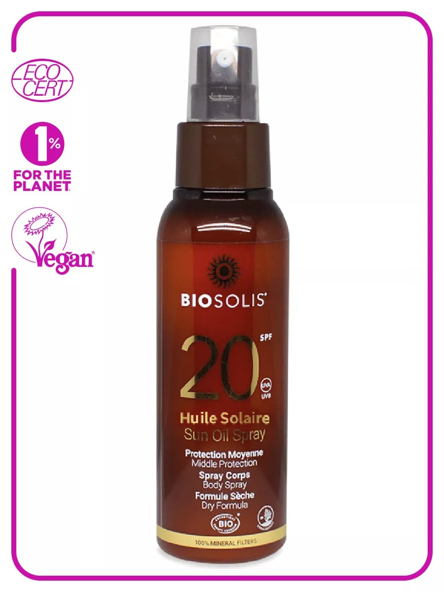BioSolis Натуральное увлажняющее сублимированное солнцезащитное масло-спрей SPF20 100 мл