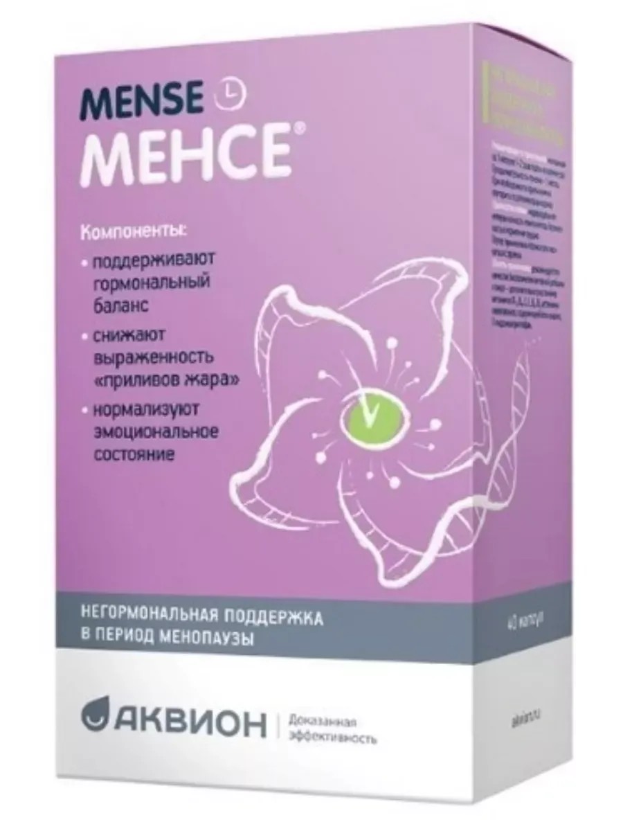 Менсе - комплекс изофлавонов сои, аминокислот бета-аланина и 5-гидрокситриптофана, витаминов. Полезные вещества, входящие в состав Менее, помогут нивелировать проявления климактерического синдрома и снизить риск развития нежелательных последствий климакса.