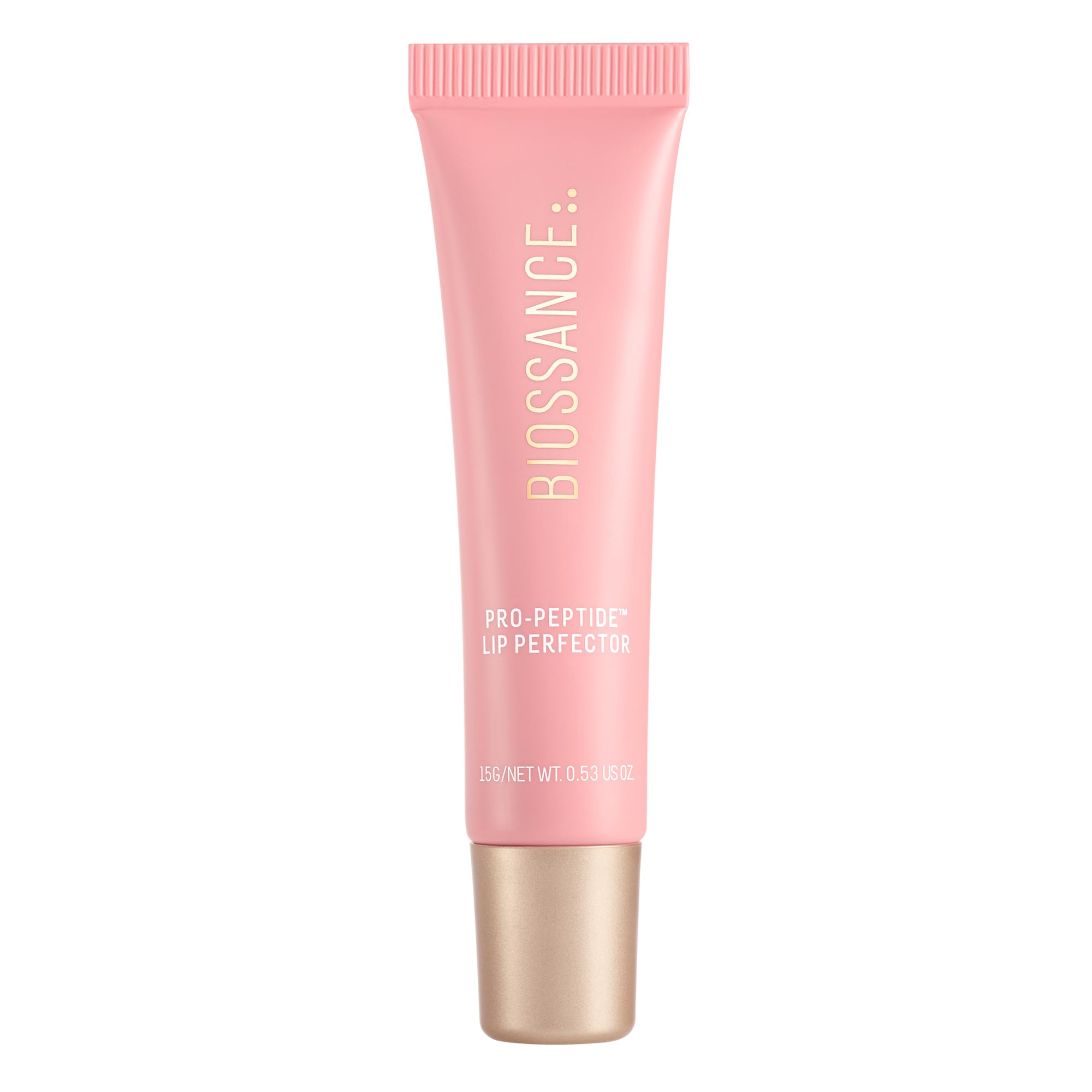 Biossance Pro-Peptide Lip Perfector Triple-Treat Vegan Lip Balm Deeply Hydrating with Pro-Peptides & Hyaluronic Acid Enhances Natural Lip Color Silky Glossy Finish in Blush Quartz Pink