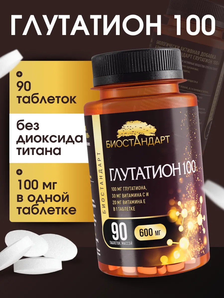Биостандарт Глутатион 100, с витаминами C(С) и E(Е), 90 таблеток