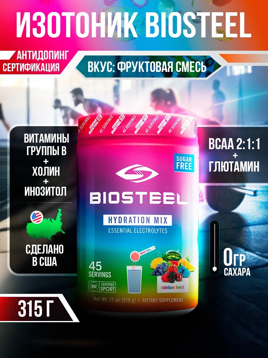 Изотоник Biosteel — эффективная формула для гидратации и восстановления без сахара. Этот спортивный напиток в порошке идеально подходит для поддержания водного баланса и энергии во время тренировок и активного образа жизни. В составе — **натуральные ингредиенты без искусственных красителей и ароматизаторов**, подслащенный стевией, что обеспечивает приятный вкус без резких скачков сахара в крови.