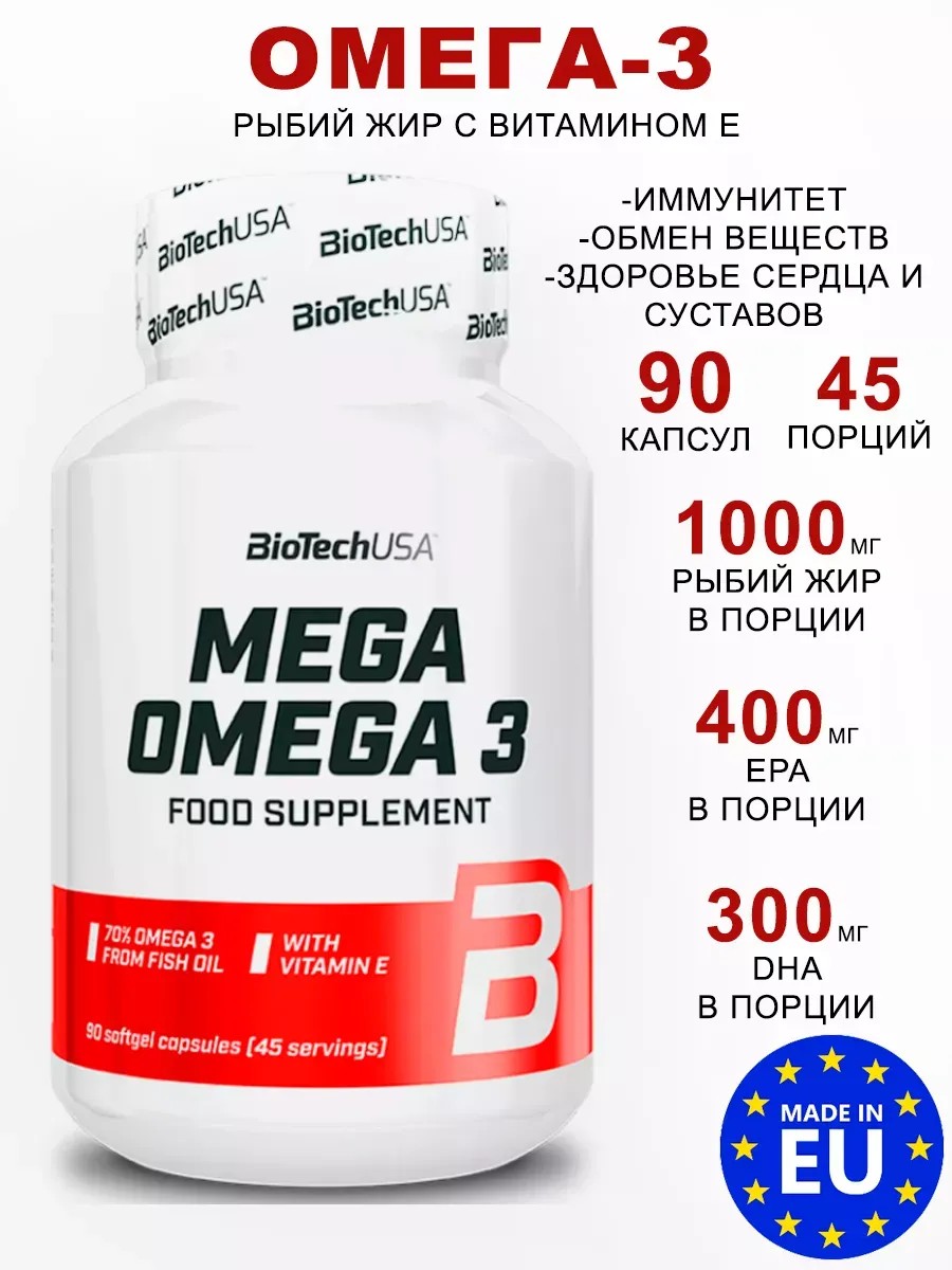 BioTech USA Рыбий жир Mega Omega-3 90 капсул