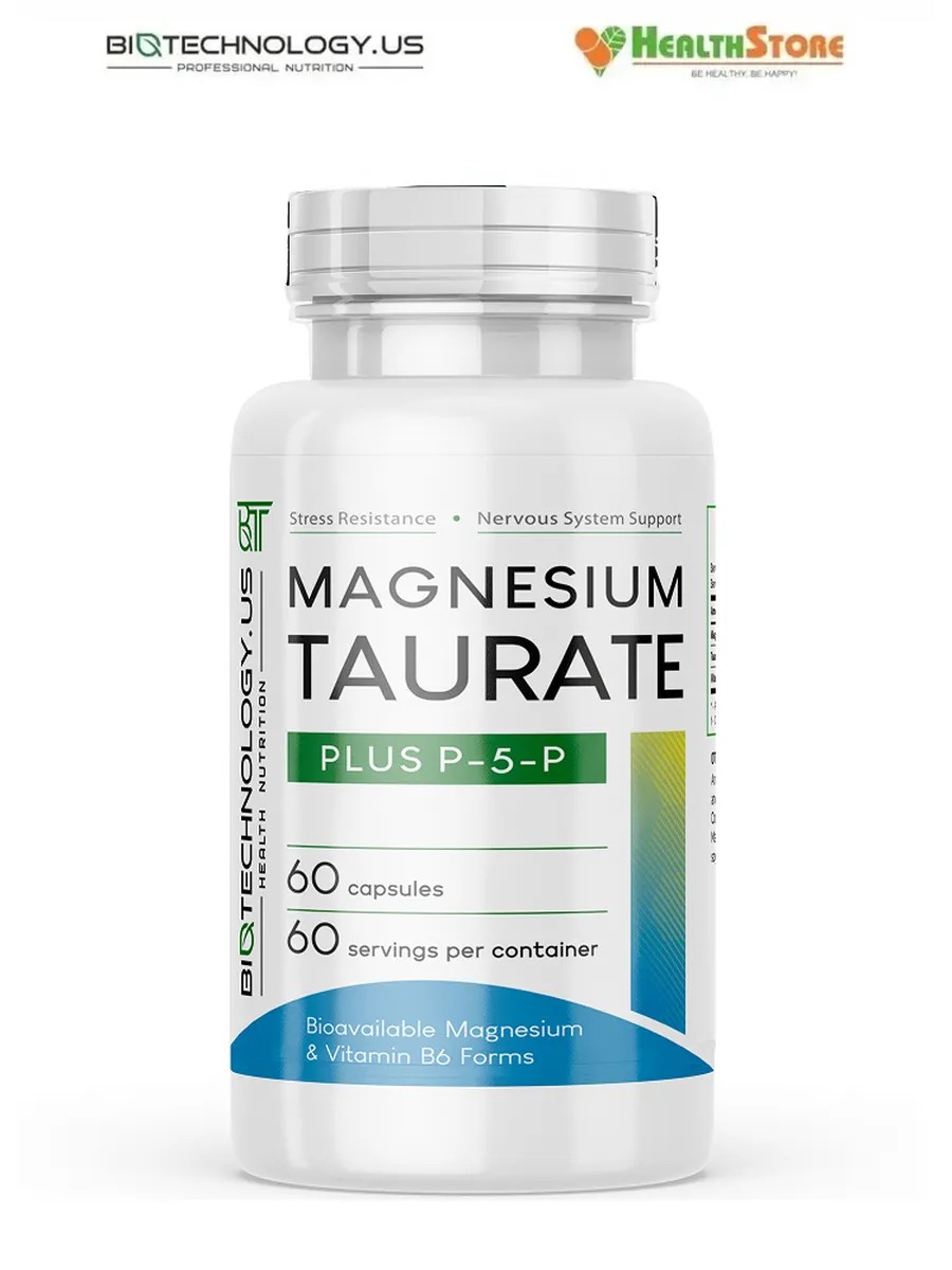 Biotechnology.US Magnesium Taurate Plus P-5-P 60капс магний таурат магния, B6