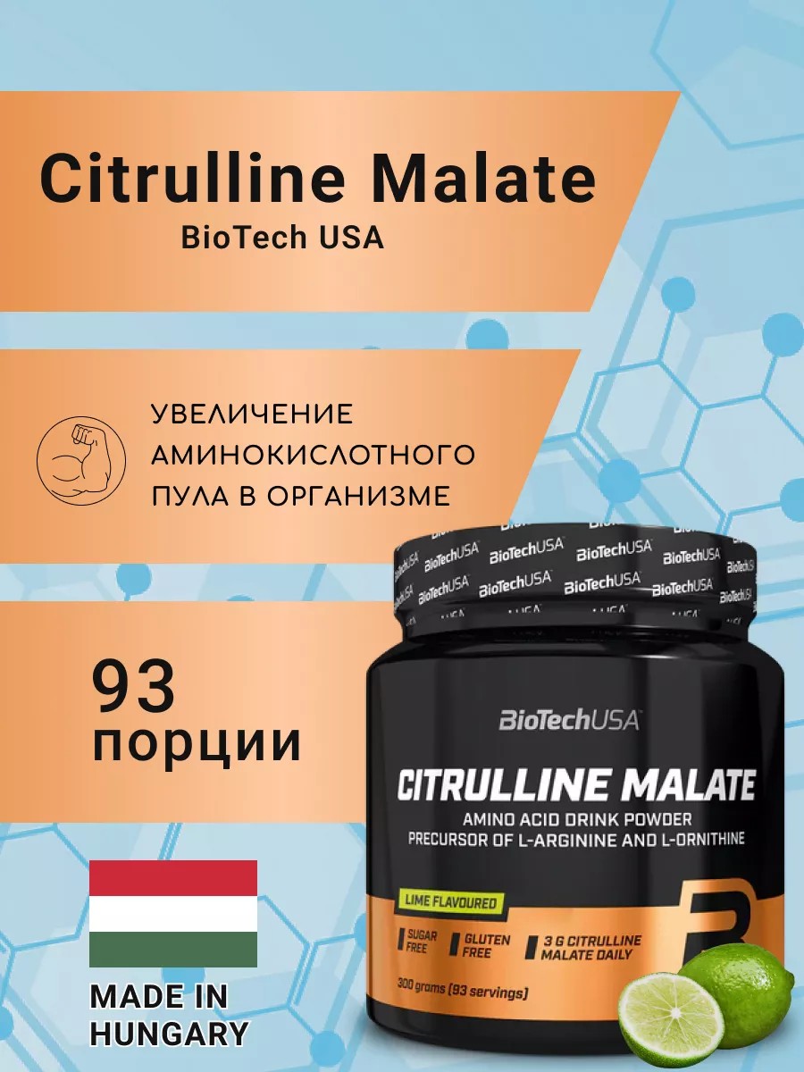 Биологически активная добавка, которая в себе содержит цитруллин и яблочную кислоту – малат, усиливающую воздействие аминокислоты на организм и способствует ее усвоению. В момент, когда организм после усиленного режима тренировок нуждается в восстановлении, когда есть ощущения недостатка энергии и потери сил, то прием препарата Citrulline Malate окажет благотворное воздействие и наполнит энергией для дальнейших спортивных достижений.