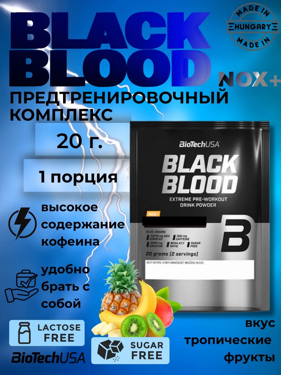 | Комплектация | Предтренировочный комплекс Black Blood NOX,20 гр,тропические фрукты-1 шт |