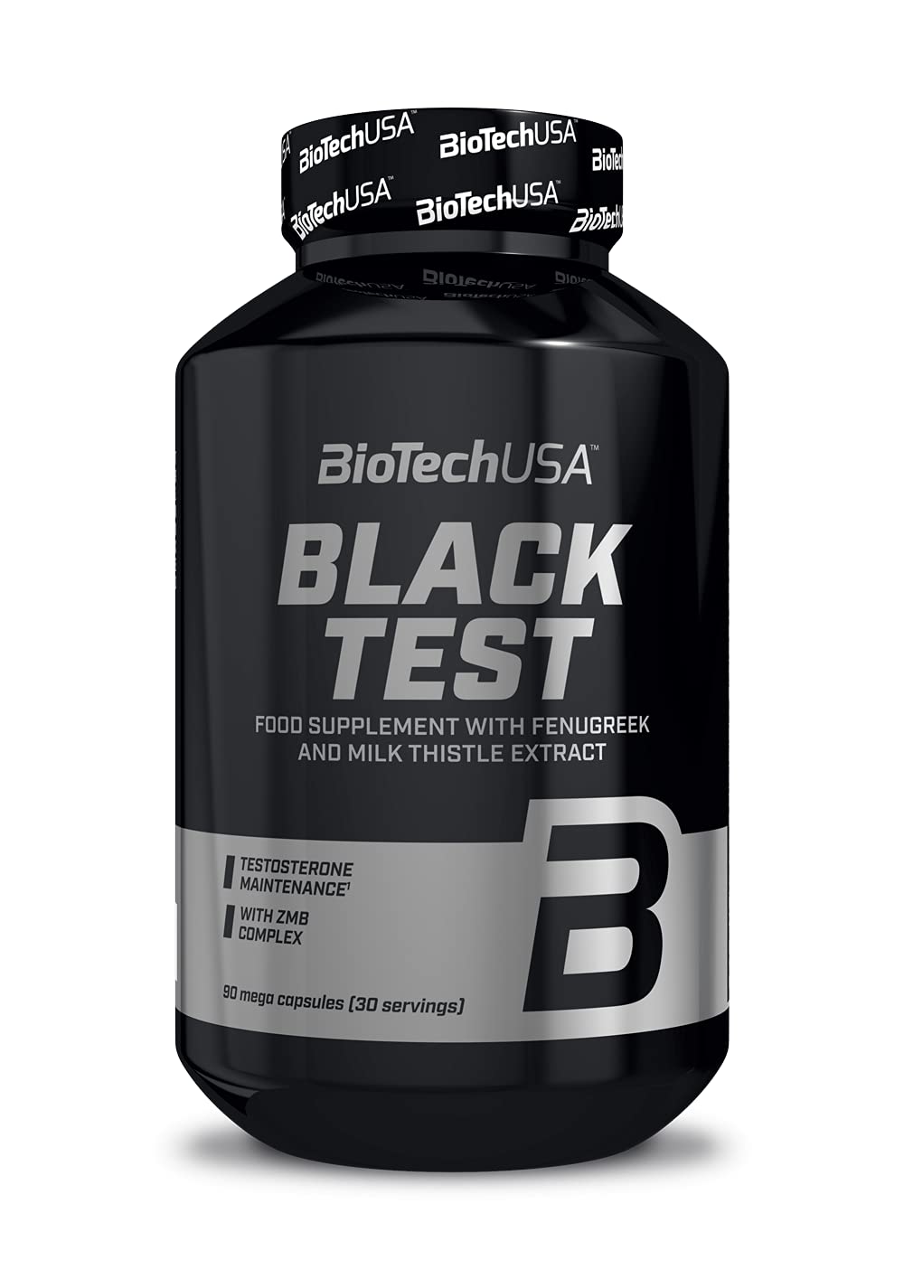 Zwarte Test contains hormone and prohormone-free substances, exclusively from natural sources. Beta-alanine that contributes to carnosine production. In addition to the plant extracts, an important combination of active ingredients in Zwarte Test is the ZMB complex, consisting of a specific ratio of zinc, magnesium and vitamin B6. The formula is also unique due to the content of niacin, L-arginine and Beta-alanine. Serving size (3 capsules): 975 mg fenugreek seed extract, 225 mg milk thistle extract, 233 mg broccoli extract, 900 mg beta-alanine, 682 mg L-arginine, 132 mg ZMB complex, 75 mg magnesium, 5 mg zinc, 1.5 mg vitamin B6, 7.5 mg niacin. 9 active ingredients, 3 plant extracts: Fenugreek seed extract, Milk thistle fruit extract, Broccoli extract, NO precursor with L-arginine, Without stimulants.BioTechUSA Black Test, Voedingssupplement capsules ontworpen voor mannen, met arginine aminozuur, plantenextracten, vitaminen en mineralen, 90 mega capsulesZwarte Test bevat hormoon- en prohormoonvrije stoffen, uitsluitend uit natuurlijke bronnen. Beta-alanine die bijdraagt aan de carnosine productie. Naast de plantenextracten is een belangrijke combinatie van actieve ingrediënten in Zwarte Test het ZMB-complex, bestaande uit een specifieke verhouding van zink, magnesium en vitamine B6. De formule is ook uniek door het gehalte aan niacine, L-arginine en Beta-alanine. Portiegrootte (3 capsules): 975 mg fenegriekzaadextract, 225 mg mariadistelextract, 233 mg broccoli-extract, 900 mg bèta-alanine, 682 mg L-arginine, 132 mg ZMB-complex, 75 mg magnesium, 5 mg zink, 1,5 mg vitamine B6, 7,5 mg niacine. 9 actieve ingrediënten, 3 plantenextracten: Fenegriekzaadextract, Mariadistel fruitextract, Broccoli-extract, NO-precursor met L-arginine, Zonder stimulerende middelen.