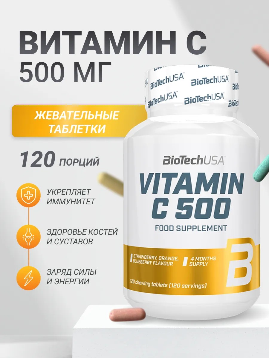 Vitamin C 500 от BiotechUSA – жевательная формула витамина С, отличный вкус и польза в одной таблетке. Одной упаковки хватает на то, чтобы полностью обеспечить организм витамином С на 4 месяца.