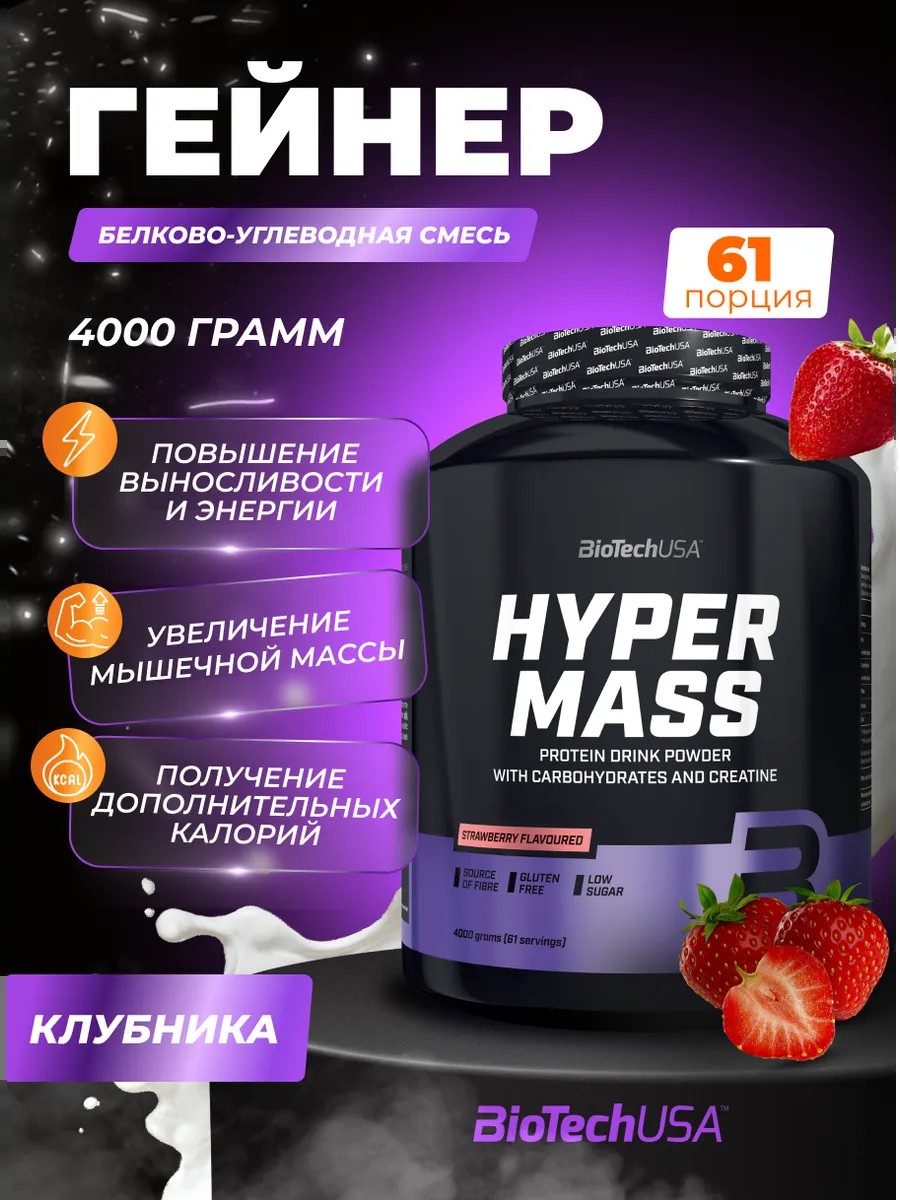 Гейнер Hyper Mass BiotechUSA является качественной белково-углеводной смесью, предназначенной для тех, кто стремится к набору мышечной массы и эффективному восстановлению после тренировок. Hyper Mass идеально подходит как мужчинам, так и женщинам, занимающимся спортом и стремящимся к увеличению силы и объема мышц.