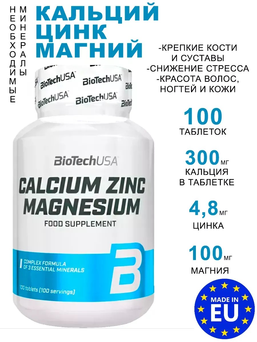 BioTechUSA Комплекс минералов Ca-Zn-Mg 100 таблеток