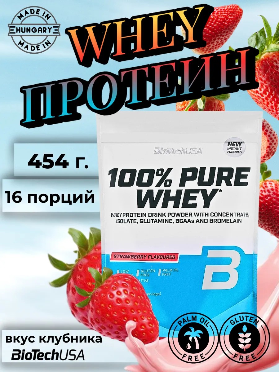 BioTechUSA Протеин Pure Whey 100% 454 г. Клубника