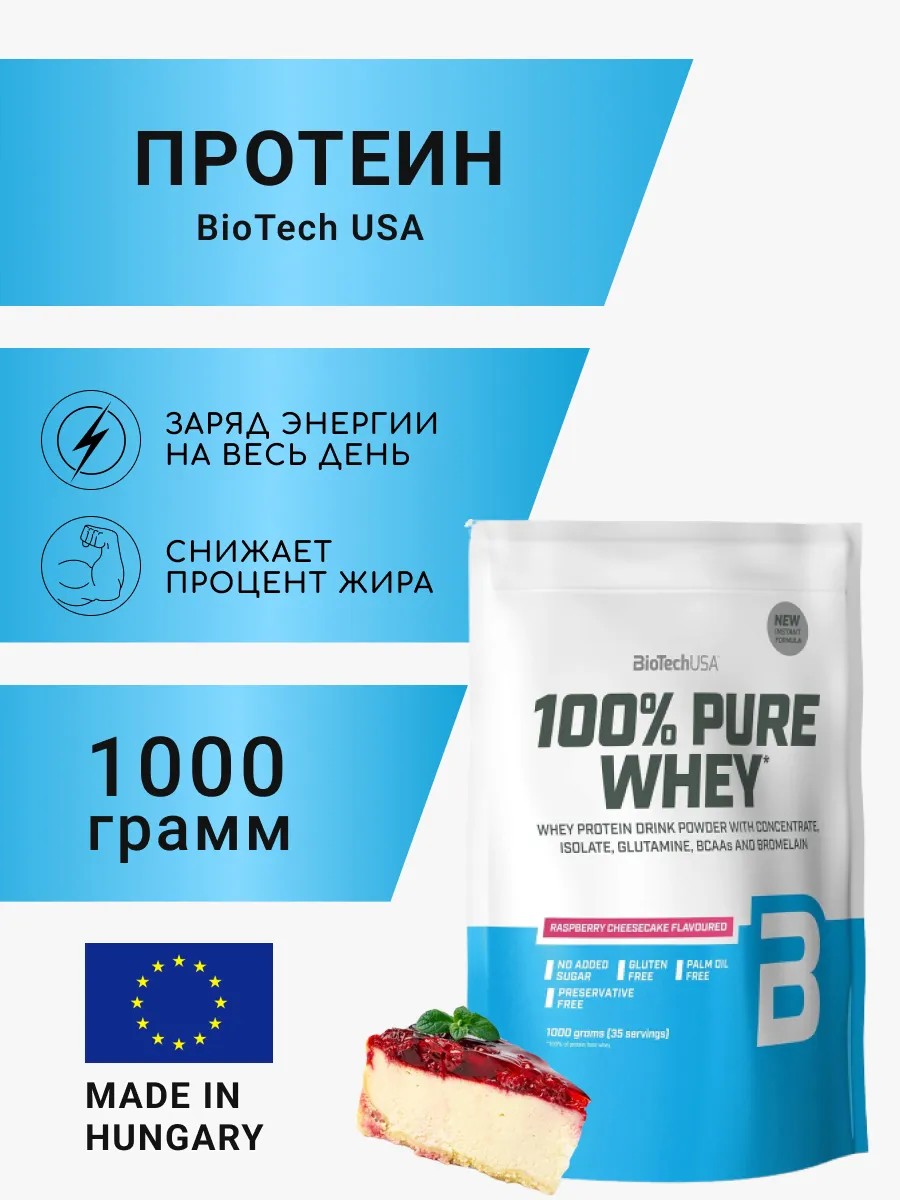BioTechUSA Протеин сывороточный 100% Pure Whey 1000 г. Малина-чискейк