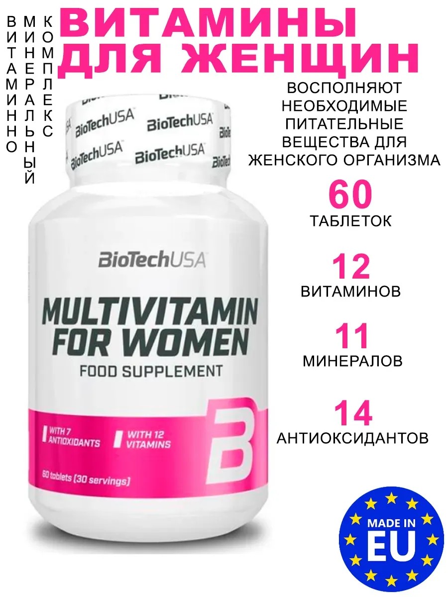 Разработанный специально для женщин комплекс мультивитаминов от компании BioTech USA обеспечивает сбалансированное питание в первую очередь благодаря антиоксидантам, витаминам и минералам, дополняя полезную диету.