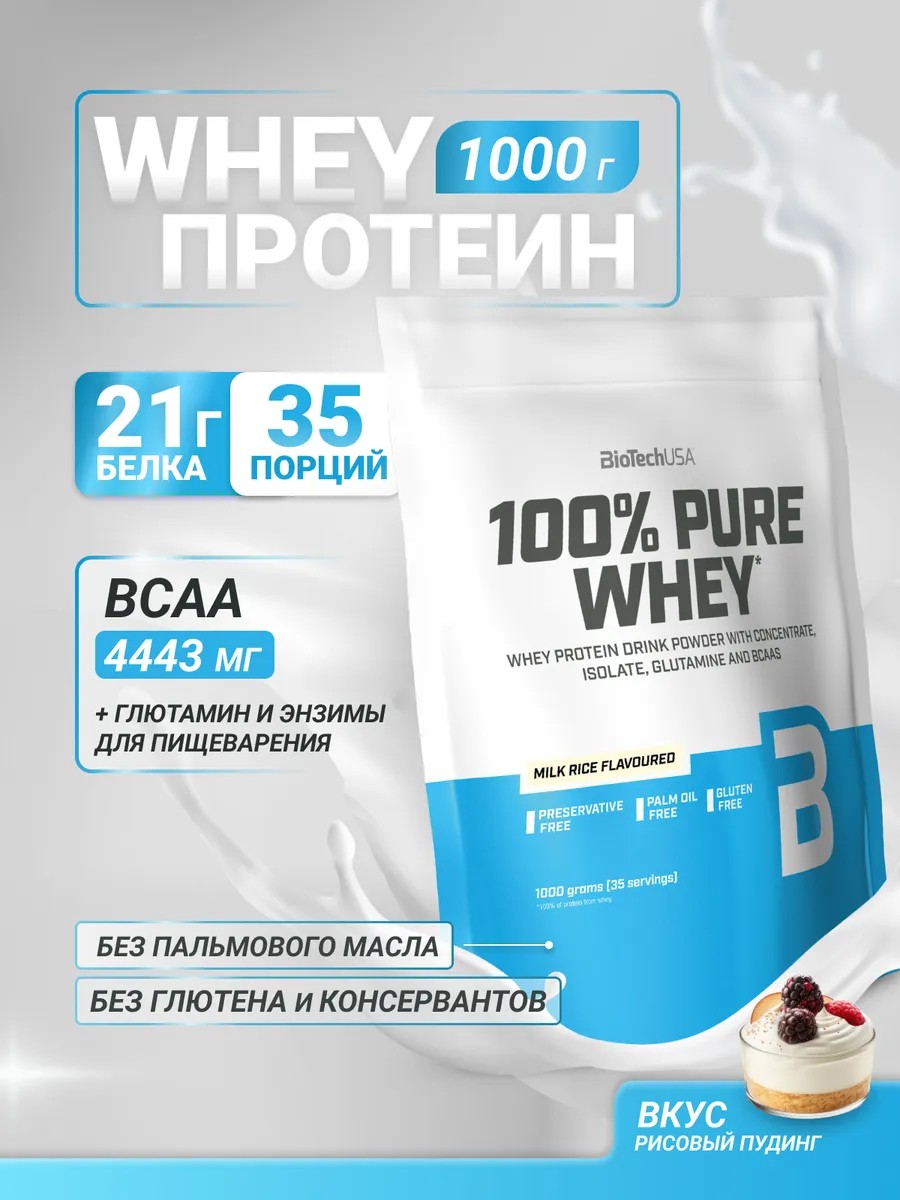 BioTechUSA Сывороточный протеин 100% Pure Whey 1000 г. рисовый пудинг