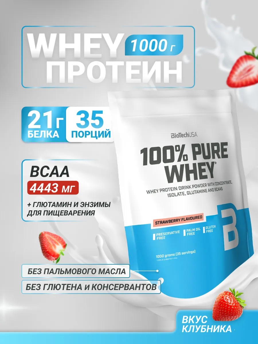 BioTechUSA Сывороточный протеин 100% Pure Whey 1000 г. клубника