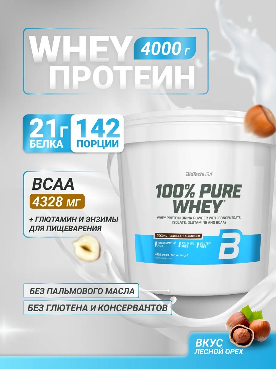 BioTechUSA Сывороточный протеин 100% Pure Whey 4000 г. лесной орех