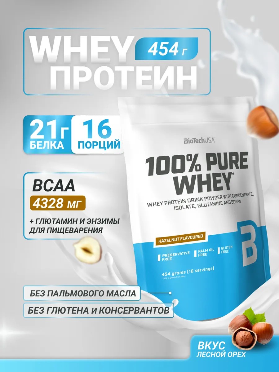 BioTechUSA Сывороточный протеин 100% Pure Whey 454 г. лесной орех