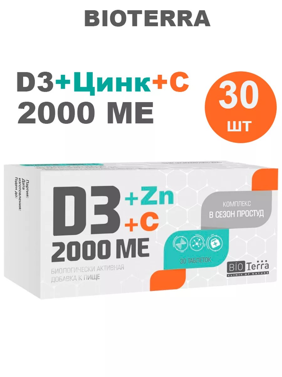 Bioterra D3 2000 me+цинк+с комплекс N30 600мг-1шт