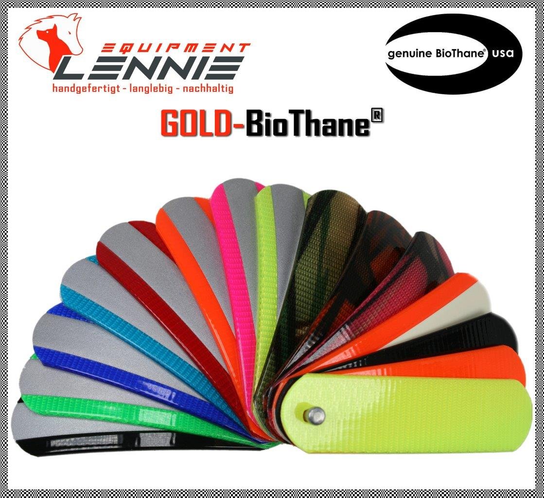 Biothane meter goods Biothane is a high -quality plastic belt with leather -like properties that has a polyester fabric inside that ensures enormous tear resistance.Biothane prevents knotting or getting stuck thanks to a certain rigidity, ideal for tow lines.Durable, easy to care for, hygienic, does not absorb moisture and no foreign smells, which is constant weight and constant properties regardless of the temperature, high abrasion resistance, easy cleaning under running water, no fur fracture, weather -resistant, no fading. Biothane variants: Granite biotane Ultra Thin - approx. 0.9 mm thick Beta-biothane Super flex - approx. 1.5 mm thick Standard - approx. 2.5 mm thick Super heavy - approx. 3.8 mm thick Beta Reflex Biothane - with reflex stripes Round beta -biothane - 6.4 mm and 8 mm diameter Grippy-Biothane (soft and grippy than beta-biothane) Standard - approx. 2.5 mm thick Super heavy - approx. 3.8 mm thick Super grip - approx. 6.4 mm thick, with knobs Gold Biothane (smooth surface, stiffer material compared to beta-biothane) High flex - approx. 2 mm thick Standard - approx. 2.5 mm thick Gold Reflex Biothane - approx. 2.5 mm thick, with reflex stripes Gold Glow Biothane - approx. 2.5 mm thick, with fluorescent stripes Gold Camouflage Biothane - approx. 2.5 mm thick, camouflage pattern Upholstery material - approx. 5 mm thick, profiled surface, closed pores, waterproof The Lennie Manufaktur specializes in the production of individual products from Biothane and Easycare according to customer requirements. Please send a message for special requests or call 030 42027562.for special requests please send a message after purchase or call 030 42027562.1 piece corresponds to one meter - maximum coherent length approx. 30 meters (100 feet).Width: 25 mm, weight: approx. 69 g m, tear resistance: approx. 450 kg.Waterproof PU Caumed Nylongurtband with fluorescent strip.Metals made of gold Biothane in Neon-Grün-Glow.BioThane Meterware BioThane ist ein hochwertiger Kunststoffgurt mit lederähnlichen Eigenschaften, der im Inneren ein Polyestergewebe hat, welches eine enorme Reißfestigkeit gewährleistet. BioThane verhindert Verknoten oder Hängenbleiben dank einer gewissen Steifigkeit, ideal für Schleppleinen. Langlebig, pflegeleicht, hygienisch, nimmt keine Feuchtigkeit auf und keine fremden Gerüche an, dadurch konstantes Gewicht und gleichbleibende Eigenschaften unabhängig von der Temperatur, hohe Abriebfestigkeit, einfache Reinigung unter fließendem Wasser, kein Fellbruch, witterungsbeständig, kein Verblassen. Biothane-Varianten: Granite-Biothane Ultra Thin - ca. 0,9 mm dick Beta-Biothane Super Flex - ca. 1,5 mm dick Standard - ca. 2,5 mm dick Super Heavy - ca. 3,8 mm dick Beta Reflex Biothane - mit Reflexstreifen Runde Beta-Biothane - 6,4 mm und 8 mm Durchmesser Grippy-Biothane (weicher und griffiger als Beta-Biothane) Standard - ca. 2,5 mm dick Super Heavy - ca. 3,8 mm dick Super Grip - ca. 6,4 mm dick, mit Noppen Gold Biothane (glatte Oberfläche, steiferes Material im Vergleich zu Beta-Biothane) High Flex - ca. 2 mm dick Standard - ca. 2,5 mm dick Gold Reflex Biothane - ca. 2,5 mm dick, mit Reflexstreifen Gold Glow Biothane - ca. 2,5 mm dick, mit fluoreszierendem Streifen Gold Camouflage Biothane - ca. 2,5 mm dick, Tarnmuster Polstermaterial - ca. 5 mm dick, profilierte Oberfläche, geschlossene Poren, wasserfest Die Manufaktur LENNIE ist spezialisiert auf die Anfertigung individueller Produkte aus BioThane und EasyCare nach Kundenwünschen. Für Sonderwünsche bitte eine Nachricht zusenden oder 030 42027562 anrufen.Für Sonderwünsche bitte eine Nachricht nach dem Kauf zusenden oder 030 42027562 anrufen. 1 Stück entspricht einem Meter – maximale zusammenhängende Länge ca. 30 Meter (100 Fuß). Breite: 25 mm, Gewicht: ca. 69 g m, Reißfestigkeit: ca. 450 kg. Wasserfestes PU ummanteltes Nylongurtband mit fluoreszierendem Streifen. Meterware aus Gold BioThane in Neon-Grün-Glow.BioThane Meterware, Gold Standard, 13-38 mm breit, ca. 2,5 mm dick, viele Farben, 25mm, Neon-Grün-Glow 25 mm Neongrün (GN318)-Glow