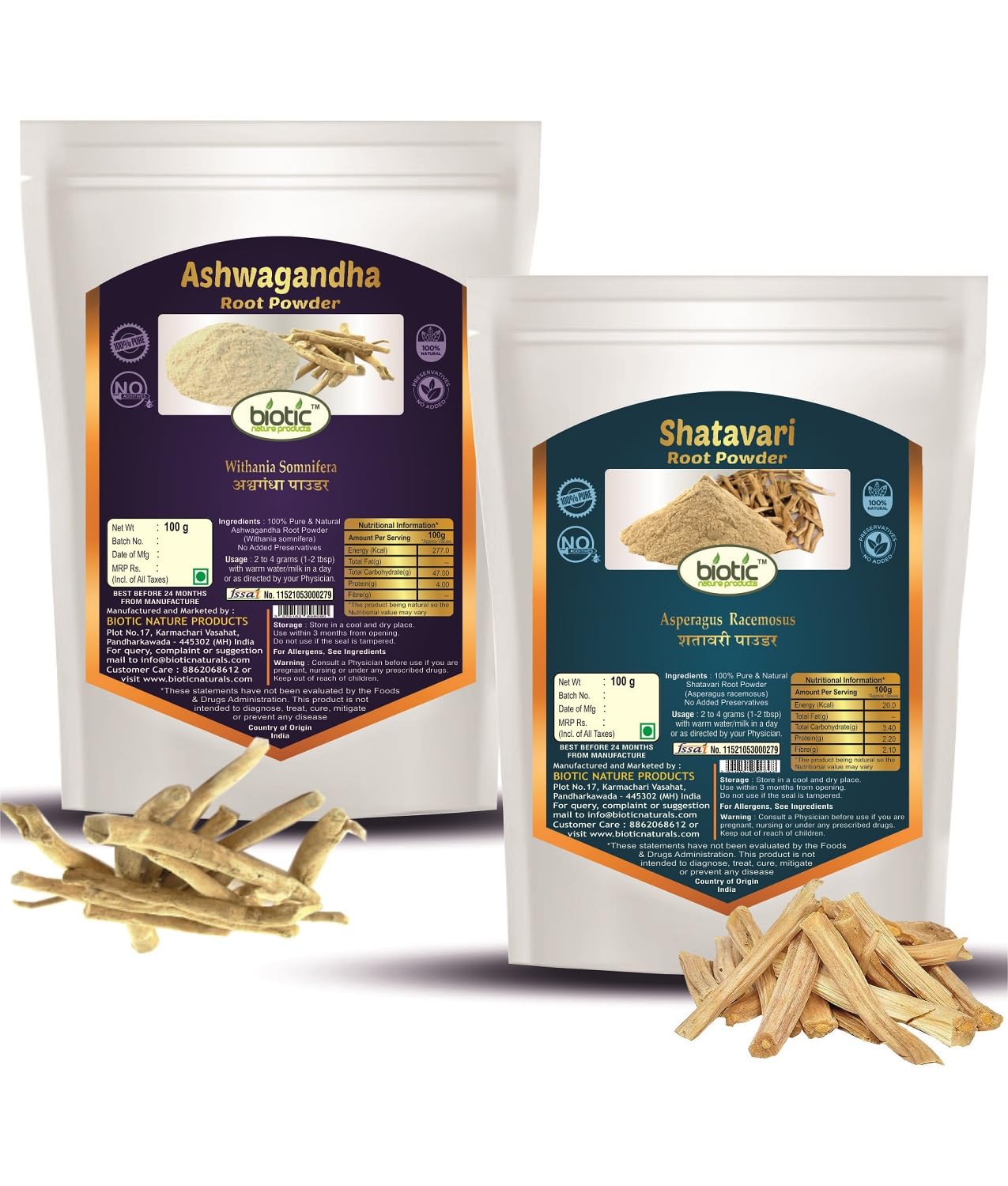 Biotic Natural Ashwagandha and Shatavari Powder - 200gm (100gm each)