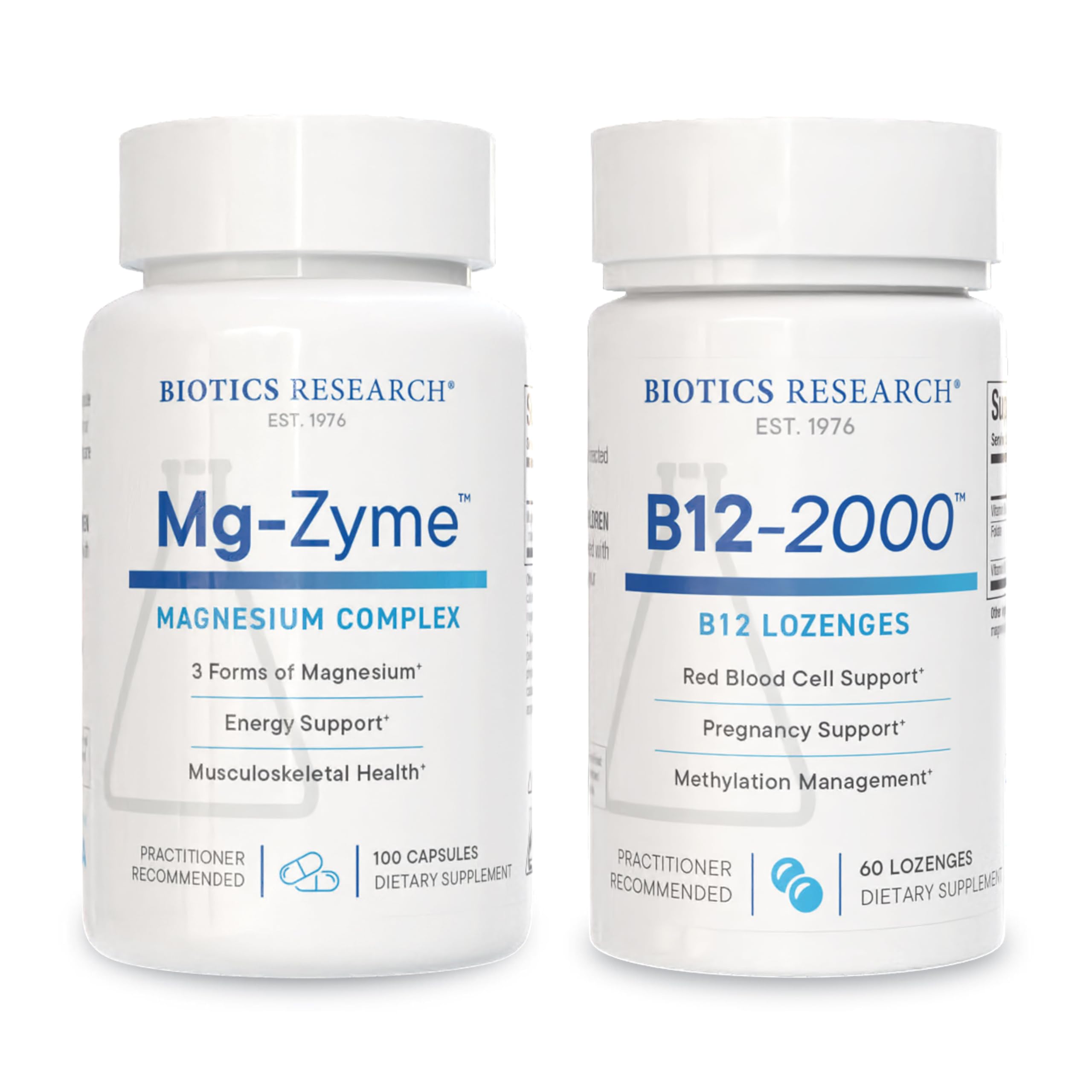 Biotics Research Mg-Zyme Triple Magnesium Complex for Sleep Relaxation & Bone Health + B12-2000 Vitamin B12 B6 & Folate for Energy & Methylation Support 100 Caps & 60 Lozenges
