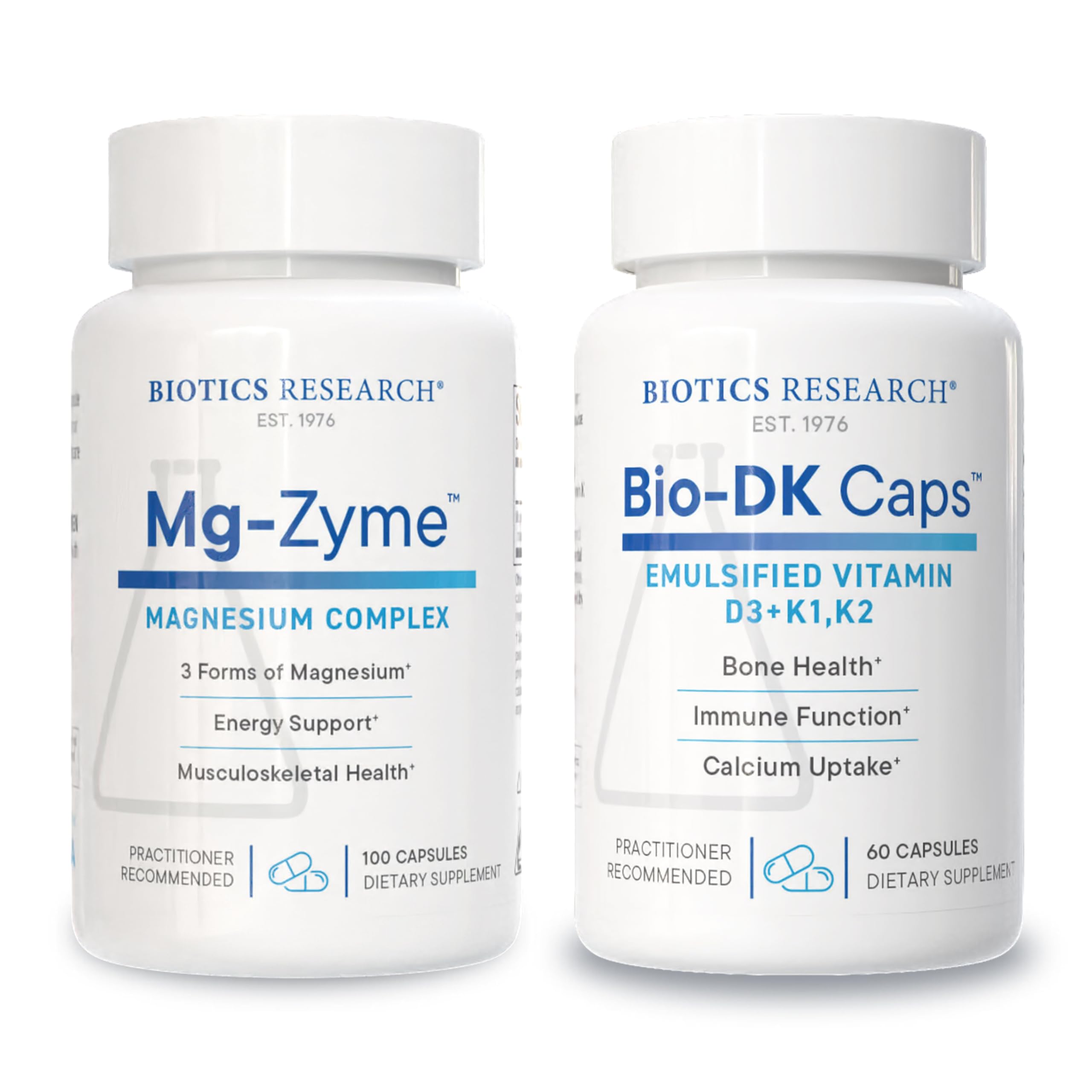 Biotics Research Mg-Zyme Triple Magnesium Complex for Sleep Relaxation & Bone Health + Bio-DK Caps Emulsified Vitamin D3 & K1/K2 for Strong Bones Heart & Immune Support 100 Capsules & 60 Capsules