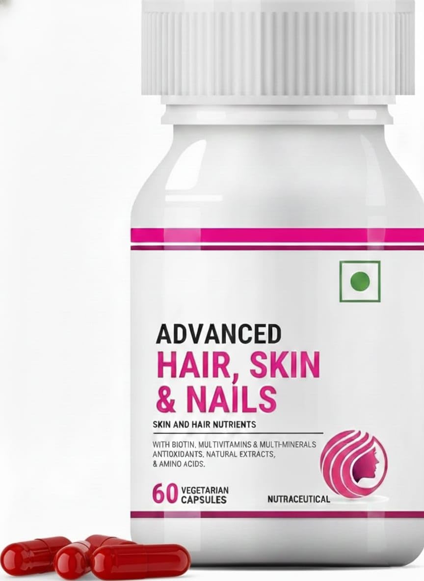 TASTY, 100 NATURAL AND VEGAN: 100 plant based melts into Hair Fall Control gives you the support you need in a delicious Tropical Strawberry flavor to make consumption delicious and fun. Place one melts strip on the tongue allow it to dissolve. Take one strip20 minutes after a meal. Vegan Certified Non-GMO. Soy, Gluten Gelatin free. LOVED GLOBALLY : Over 5 million happy customers in 6 Countries trust for Science driven plant based solutions. Biotin tablets help improve hair thickness and volume. It stimulates keratin production to help make the hair stronger. Our product contains the most effective formulation of trusted ingredients that are carefully processed and manufactured in a GMP certified manufacturing facility, so you can be sure that you're safe. Hair Skin and Nails Supplement, are offered in HPMC vegetarian capsules. Packed with the nutrient essentials that may support healthy hair, nail and skin. A unique combination of Biotin, Grape Seed Extract, L-Cysteine, DL-Methionine, Citrus Bioflavonoids natural extracts of Bhringraja, Amalaki Dry Brahmi with essential vitamins minerals.