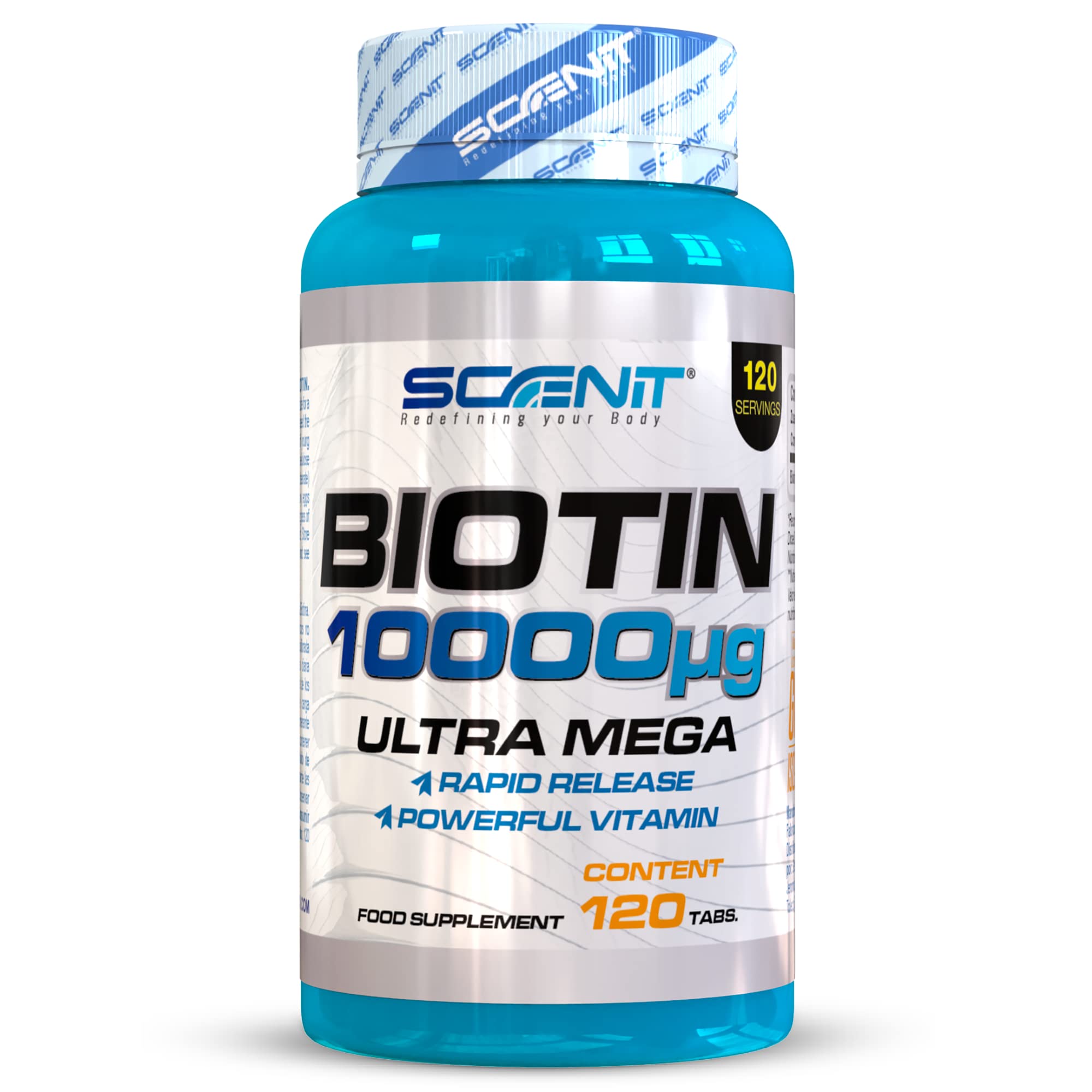 ✓ GMP, ISO 9001 and HACCP: The manufacturing of Scenit Biotin 1000 mcg is supported by ISO-9001, GMP (Good Manufacturing Practices) and HACCP standards. These standards ensure that the product complies with the highest standards of quality, safety and control throughout its manufacturing process. ✓ Easy to incorporate hair biotin into your routine: Thanks to the small bottle of Scenit Biotin 1000 mcg, it can be easily integrated into your daily routine. ✓ 120 days of biotin: With each pack of our Biotin 10000 mcg, you get 120 tablets. Each is designed to support hair health with these hair vitamins, and is a valuable addition to your daily hair care routine. ✓ High Absorption Biotin 1000mcg: Scenit's Biotin 10000mcg Hair Growth Tablets are formulated to provide rapid and complete absorption for the highest possible bioavailability. ✓ Biotin for Excessive Hair Loss: Our Scenit Biotin for Hair is designed with your hair in mind. It has been developed to support hair strength and elasticity. Our hair vitamins are formulated to be used alongside other external treatments.✓ GMP, ISO 9001 et HACCP : La fabrication de la Biotine 1000 mcg de Scenit est soutenue par les normes ISO-9001, GMP (Good Manufacturing Practices) et HACCP. Ces normes garantissent que le produit est conforme aux normes les plus élevées de qualité, de sécurité et de contrôle tout au long de son processus de fabrication. ✓ Biotine cheveux facile à incorporer dans votre routine : Grâce au petit flacon de biotine 1000 mcg de Scenit, il peut être facilement intégré dans votre routine quotidienne. ✓ 120 jours de biotine : Avec chaque paquet de notre biotine 10000 mcg, vous obtenez 120 comprimés. Chacun est conçu pour soutenir la santé des cheveux avec ces vitamines pour les cheveux, et est un ajout précieux à votre routine quotidienne de soins capillaires. ✓ Biotine 1000 mcg à haute absorption : Les comprimés de Biotine 10000 mcg pour la croissance des cheveux de Scenit sont formulés dans le but d'offrir une absorption rapide et complète, afin d'avoir la biodisponibilité la plus élevée possible. ✓ Biotine pour la chute excessive des cheveux : Notre biotine pour les cheveux de Scenit est conçue en pensant à vos cheveux. Elle a été développée dans le but de soutenir la force et l'élasticité des cheveux. Nos vitamines pour les cheveux sont formulées pour être utilisées en complément d'autres traitements externes.