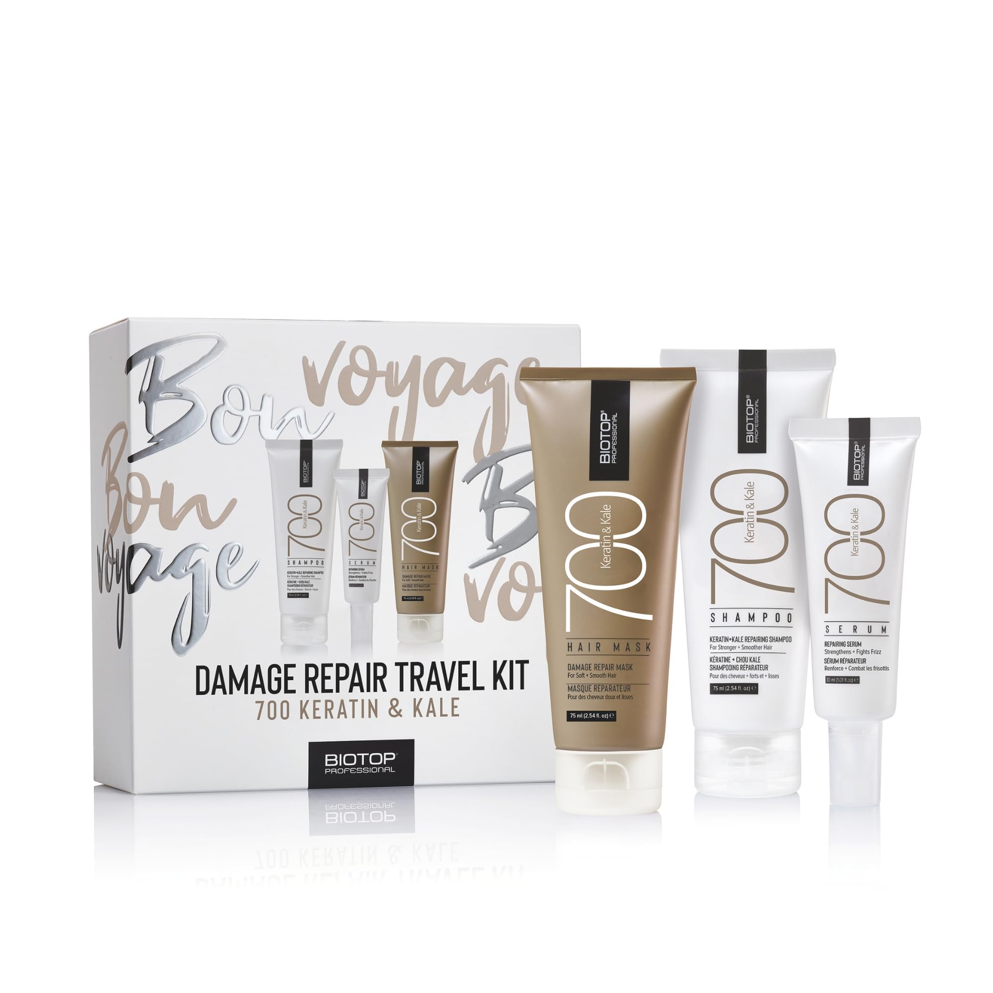 Advanced Care for Perfect Hair - Biotop Professional blends salon-quality innovation with easy-to-use hair styling products, delivering high-performance hair sprays trusted by stylists and loved by beauty enthusiasts across all hair types. 700 Keratin Kale Serum - This lightweight serum smooths frizz, seals split ends, and defends against heat damage. Keratin and kale extract hydrate and repair while promoting softness and shine. 700 Keratin Kale Hair Mask - Delivers intensive hydration and shine in just 30 seconds. Infused with keratin, castor oil, and vitamins B5 and E to condition and protect color-treated or thick, dry hair. 700 Keratin Kale Shampoo - Gently cleanses and restores dry, damaged hair while infusing each strand with keratin and kale extract to boost strength, smoothness, and natural shine. Strengthening Travel Routine - Includes 700 Keratin Kale Shampoo, Hair Mask, and Smoothing Serum for a complete care system that strengthens, repairs, and smooths hair on the go.