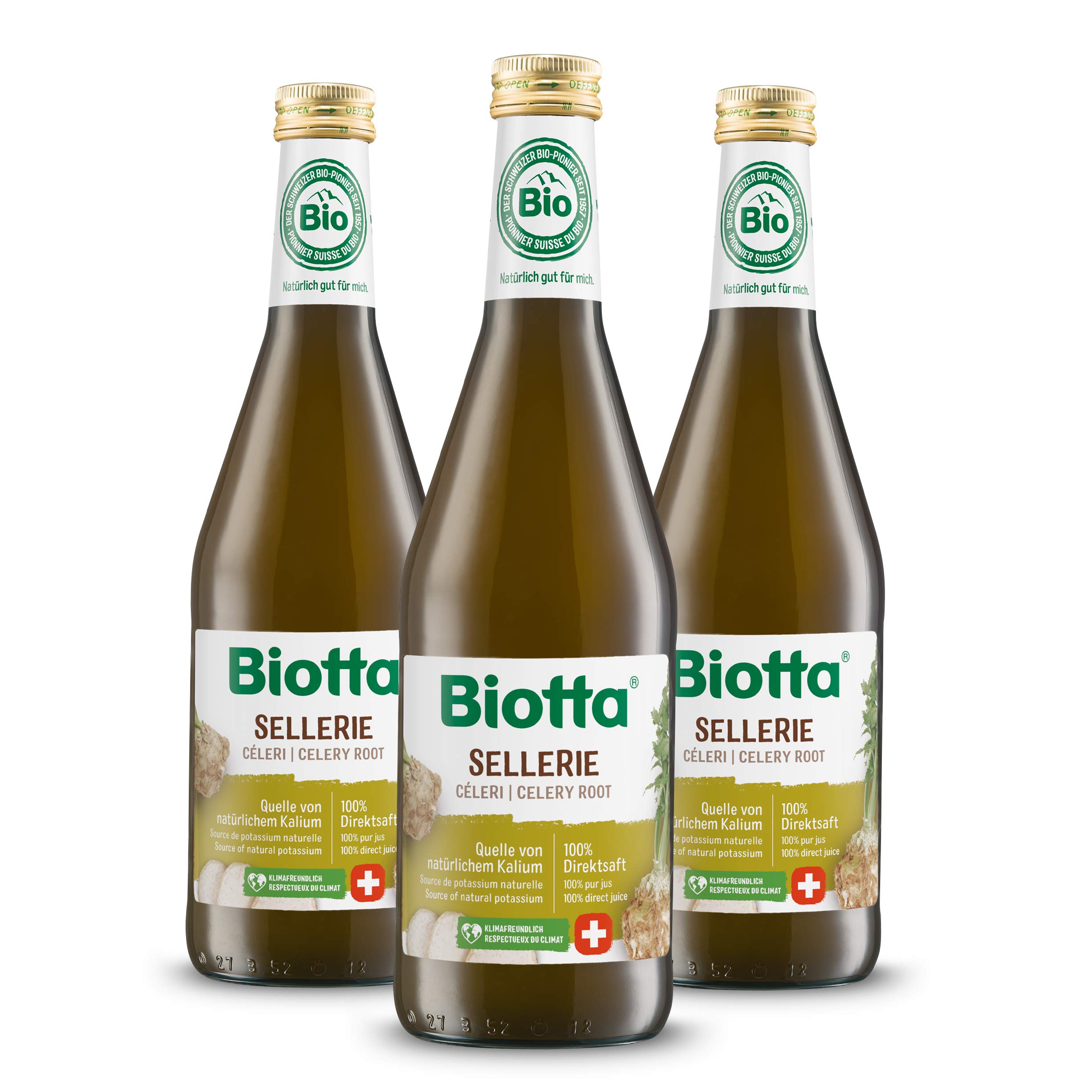 As a sustainable manufacturer, Biotta has been seeking to give back a little nature to individuals since 1975, sip after sip. Organic production, high quality standards and enjoyment are at the forefront here. This is why Biotta adopts a global and fair approach, from cultivation to bottling. By cooperating closely with regional farmers located near the manufacturing site on the southern shore of Lake Constance, Switzerland, Biotta supports the local economy and encourages sustainable organic farming. Reputable national and international certificates such as Bio Suisse and others guarantee the controlled quality of Biotta products and production processes. But Biotta goes even further in its ecological philosophy by relying on local wood as a source of domestic energy, which has earned it a neutral carbon footprint since the end of 2019. Thus, the wood chip heating system makes it possible to obtain energy (zero carbon) that is 100 free from fossils. This project perfectly meets the sustainability objectives defined internally by Biotta: green energy and less CO2. INGREDIENTS CELERY juice (Switzerland), acidifier (natural L ( ) lactic acid. Pasteurized. from organic farming] DIRECTIONS FOR USE Shake well and serve chilled. SAFETY WARNING No warning message A RANGE OF HEALTHY AND NATURAL PRODUCTS: Offering you the best of nature, Biotta organic vegetable juices are produced from organically grown vegetables. For decades, pesticides, herbicides, and chemical-synthetic fungicides have been banned from Biotta's fields. Biotta vegetables therefore grow in healthy, vibrant soils. FRESH FROM THE FIELD IN THE BOTTLE: Fruits and vegetables are bottled immediately after harvest to preserve their flavor. Biotta offers healthy juices, free from synthetic ingredients, colorings, preservatives, or artificial flavors! IDEAL FOR EVERYDAY USE: Biotta Celery Juice with its exceptional flavor is ideal for juice cleanses! It is beneficial for the acid-base balance: the essential oils contained in celery juice have a purifying effect. THE BENEFITS OF CELERY JUICE: Biotta Celery Juice, made from the finest organic vegetables from Thurgau, is a source of potassium, which helps maintain normal blood pressure. This Biotta preparation contains numerous vitamins and minerals, making it a powerful ally for smooth transit and restored digestion. BIOTTA CELERY JUICE: Totally natural, Celery Juice is a 100 organic, first-pressed celery juice. The Thurgau celeriac used to produce Biotta celery juice is distinguished by its particularly intense flavor, mainly due to the essential oils it contains. En qualité de manufacture durable, Biotta cherche depuis 1975 à redonner un peu de nature aux individus, gorgée après gorgée. La production biologique, les standards de qualité élevés et le plaisir sont ici au premier plan. C'est pourquoi Biotta adopte une approche globale et juste, de la culture à la mise en bouteille. En coopérant étroitement avec des agriculteurs régionaux situés à proximité du site de fabrication, sur la rive sud du lac de Constance, en Suisse, Biotta soutient l'économie locale et encourage l'agriculture biologique durable. Des certificats nationaux et internationaux réputés tels que Bio Suisse et autres garantissent la qualité contrôlée des produits et des procédés de production Biotta. Mais Biotta va plus loin encore dans sa philosophie écologique en misant sur le bois de la région comme source d'énergie domestique, ce qui lui vaut un bilan carbone neutre depuis fin 2019. Ainsi le système de chauffage à copeaux de bois permet d'obtenir une énergie (zéro carbone) 100 exempte de fossiles. Ce projet répond parfaitement aux objectifs de durabilité définis en interne par Biotta : de l'énergie verte et moins de CO2. INGRÉDIENTS jus de CELERI (Suisse), acidifiant (acide lactique L ( )naturel. Pasteurisé. issu de l'agriculture biologique ] MODE D'EMPLOI Bien agiter et servir frais. AVERTISSEMENT DE SÛRETÉ Pas de message d'avertissement UNE GAMME DE PRODUITS SAINS ET NATURELS : Vous offrant le meilleur de la nature, les jus de légumes bio Biotta sont produits à partir de légumes issus de cultures biologiques. Depuis des décennies, les pesticides, herbicides et fongicides chimico-synthétiques sont bannis des champs de Biotta. Les légumes Biotta croissent donc sur des sols sains et vivants. LA FRAÎCHEUR DU CHAMP DANS LA BOUTEILLE : Les fruits et légumes sont mis en bouteille dès leur récolte, afin de conserver leurs saveurs. Biotta propose des jus sains, dénués d'ingrédients de synthèse, de colorants, de conservateurs ou d'arômes artificiels !. IDÉAL AU QUOTIDIEN : Le jus de Céleri Biotta à la saveur d'exception est idéal pour des cures de jus ! Il est bénéfique pour l'équilibre acido-basique: les huiles essentielles contenues dans le jus de céleri ont une action dépurative. LES BIENFAITS DU JUS DE CÉLERI : Le jus de Céleri Biotta issu des meilleurs légumes bio de Thurgovie est une source de potassium, qui contribue à maintenir une pression sanguine normale. Cette préparation Biotta contient de nombreuses vitamines et minéraux, ce qui en fait un allié de poids pour un transit fluide et une digestion restaurée. BIOTTA JUS DE CÉLERI: Totalement naturel, le Jus de Céleri est un jus 100 bio de première pression de céleri. Le céleri-rave thurgovien utilisé pour produire le jus de céleri Biotta se distingue par son goût particulièrement intense, principalement dû aux huiles essentielles qu'il contient.