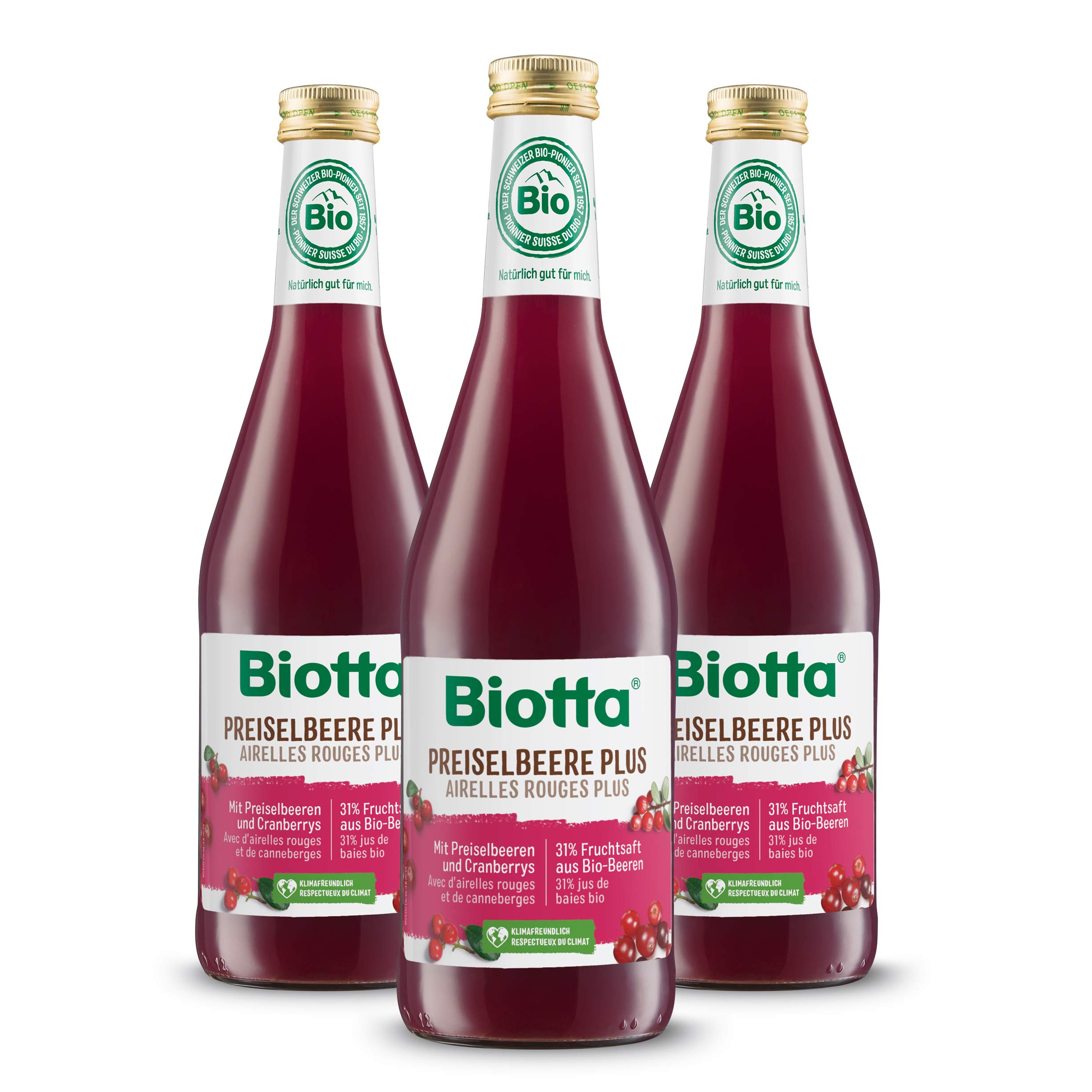 As a sustainable manufacturer, Biotta has been seeking to give back a little nature to individuals since 1975, sip after sip. Organic production, high quality standards and enjoyment are at the forefront here. This is why Biotta adopts a global and fair approach, from cultivation to bottling. By cooperating closely with regional farmers located near the manufacturing site on the southern shore of Lake Constance, Switzerland, Biotta supports the local economy and encourages sustainable organic farming. Reputable national and international certificates such as Bio Suisse and others guarantee the controlled quality of Biotta products and production processes. But Biotta goes even further in its ecological philosophy by relying on local wood as a source of domestic energy, which has earned it a neutral carbon footprint since the end of 2019. Thus, the wood chip heating system makes it possible to obtain "zero carbon" energy that is 100 free of fossils. This project perfectly meets the sustainability objectives defined internally by Biotta: green energy and less CO2. INGREDIENTS Infusion of birch leaves (2g l), cranberry juice harvested in the wild (31 ), agave concentrate (15 ). Pasteurized. from organic farming DIRECTIONS FOR USE Once opened, store in the refrigerator and drink within 8 days. SAFETY WARNING Shake well and serve chilled. A RANGE OF HEALTHY AND NATURAL PRODUCTS: Offering you the best of nature, Biotta organic vegetable juices are produced from organically grown fruit. For decades, pesticides, herbicides, and chemical-synthetic fungicides have been banned from Biotta's fields. Biotta fruits therefore grow on healthy, vibrant soils. FRESH FROM THE FIELD TO THE BOTTLE: Fruits and vegetables are bottled immediately after harvest to preserve their flavor. Biotta offers healthy juices, free from synthetic ingredients, colors, preservatives, or artificial flavors!. IDEAL FOR EVERYDAY USE: Because lingonberries have a naturally full-bodied flavor, the ready-to-drink Biotta Lingonberry juice is sweetened with agave concentrate and birch leaf tea. Biotta Lingonberry can be enjoyed daily to complement a bowl of fresh muesli, mixed with yogurt, or with fruit juices water. THE BENEFITS OF CRANBERRY JUICE: Cranberry is a small red berry with its own unique health benefits. Rich in vitamin C and antioxidants essential for optimal body function, lingonberries can have a positive effect on the bladder. When it comes to cooking, this amazing little fruit has many surprises in store. BIOTTA CRANBERRY JUICE: Totally natural, Cranberry Juice is a 100 organic juice of hand-picked wild lingonberries. The lingonberries used come from forest areas where they grow wild, in a controlled environment, cultivated in accordance with strict organic guidelines. En qualité de manufacture durable, Biotta cherche depuis 1975 à redonner un peu de nature aux individus, gorgée après gorgée. La production biologique, les standards de qualité élevés et le plaisir sont ici au premier plan. C'est pourquoi Biotta adopte une approche globale et juste, de la culture à la mise en bouteille. En coopérant étroitement avec des agriculteurs régionaux situés à proximité du site de fabrication, sur la rive sud du lac de Constance, en Suisse, Biotta soutient l'économie locale et encourage l'agriculture biologique durable. Des certificats nationaux et internationaux réputés tels que Bio Suisse et autres garantissent la qualité contrôlée des produits et des procédés de production Biotta . Mais Biotta va plus loin encore dans sa philosophie écologique en misant sur le bois de la région comme source d'énergie domestique, ce qui lui vaut un bilan carbone neutre depuis fin 2019. Ainsi le système de chauffage à copeaux de bois permet d'obtenir une énergie «zéro carbone» 100 exempte de fossiles. Ce projet répond parfaitement aux objectifs de durabilité définis en interne par Biotta : de l'énergie verte et moins de CO2. INGRÉDIENTS Infusion de feuilles de bouleau (2g l), jus d'airelles rouges récoltées en pleine nature (31 ), concentré d'agave (15 ). Pasteurisé. issus de l'agriculture biologique MODE D'EMPLOI Une fois ouvert, conserver au réfrigérateur et boire dans les 8 jours. AVERTISSEMENT DE SÛRETÉ Bien agiter et servir frais. UNE GAMME DE PRODUITS SAINS ET NATURELS : Vous offrant le meilleur de la nature, les jus de légumes bio Biotta sont produits à partir de fruits issus de cultures biologiques. Depuis des décennies, les pesticides, herbicides et fongicides chimico-synthétiques sont bannis des champs de Biotta. Les fruits Biotta croissent donc sur des sols sains et vivants. LA FRAÎCHEUR DU CHAMP DANS LA BOUTEILLE : Les fruits et légumes sont mis en bouteille dès leur récolte, afin de conserver leurs saveurs. Biotta propose des jus sains, dénués d'ingrédients de synthèse, de colorants, de conservateurs ou d'arômes artificiels !. IDÉAL AU QUOTIDIEN : Le goût des airelles rouges étant corsé par nature, la préparation Biotta Airelles rouges prête à la consommation est adoucie avec du concentré d'agave et de la tisane de feuilles de bouleau. Biotta Airelles rouges peut être consommé au quotidien pour compléter un bol de müesli frais, mélangé avec du yaourt ou avec des jus de fruit eau. LES BIENFAITS DU JUS D'AIRELLES : L'airelle est une petite baie rouge qui bénéficie d'atouts santé bien à elle. Riche en vitamine C et en actifs antioxydants essentiels au fonctionnement optimal de l'organisme, les airelles rouges peuvent avoir une action positive sur la vessie. Côté cuisine, ce petit fruit étonnant réserve bien des surprises. BIOTTA JUS D'AIRELLES ROUGES : Totalement naturel, le Jus d'Airelles Rouges est un jus 100 bio de première pression d'airelles rouges des bois, cueillies à la main. Les airelles rouges utilisées proviennent de zones forestières où elles poussent de manière sauvage, dans un cadre contrôlé, cultivées dans le respect des strictes 