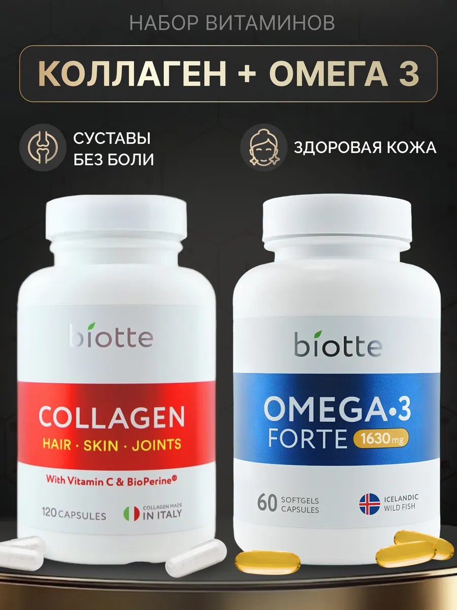 | Комплектация | коллаген 120 капсул; омега 60 капсул |