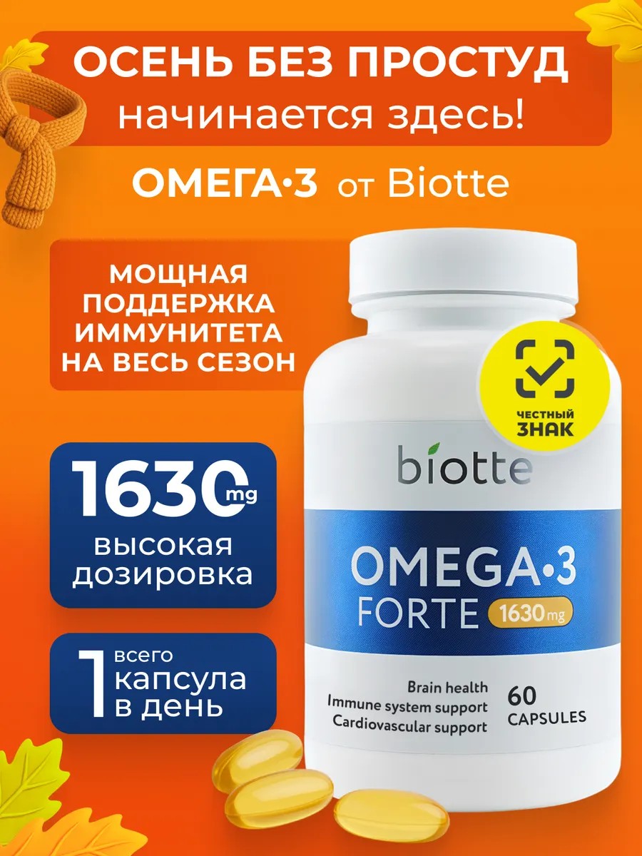 Biotte Омега 3 рыбий жир 60 капсул