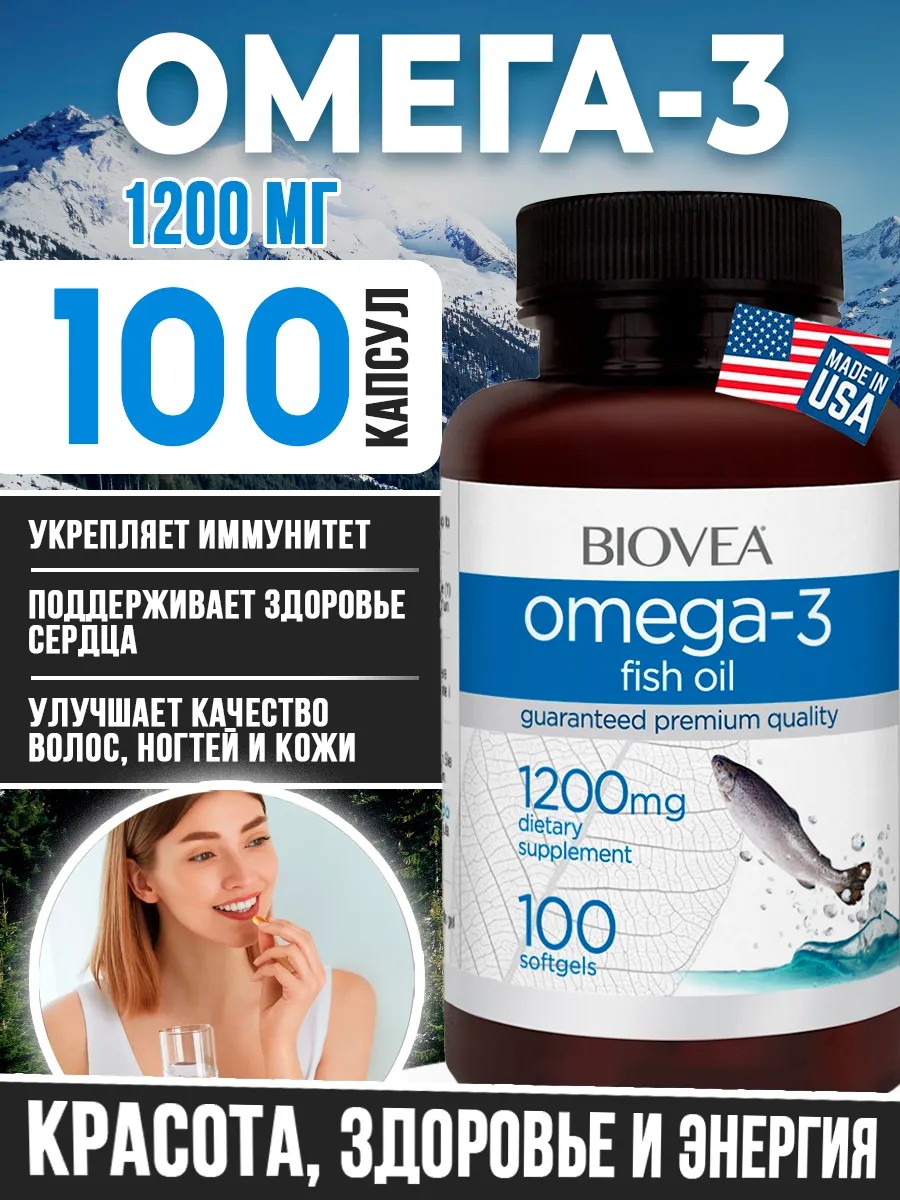 BIOVEA Омега 3 fish oil 100 капсул 1200 мг