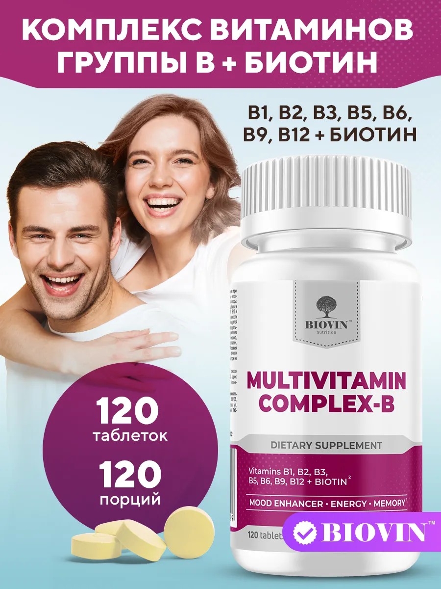 Витамины группы В в таблетках 120 табл. (b complex biotin) от Biovin.