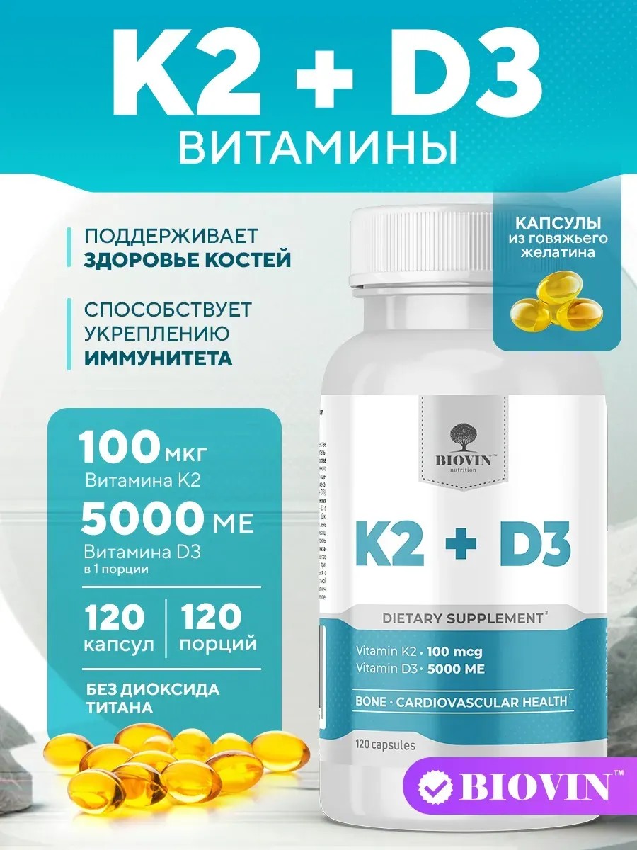 BIOVIN ХЦ. К2 + D3 витамины, 120 кап витамин д3 к2