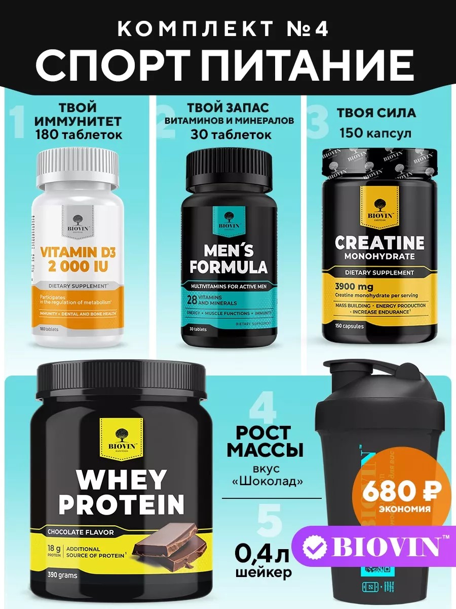 BIOVIN Комплект№4 Д3,мужские витамины,креатин,протеин,шейкер