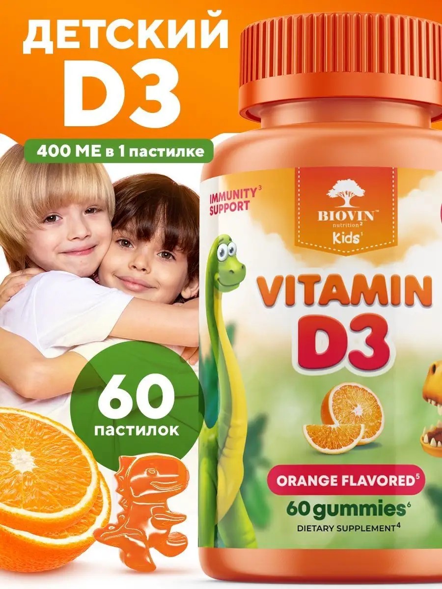 BIOVIN Витамины д3 для детей жевательные:детский d3 мульти, 60 штук